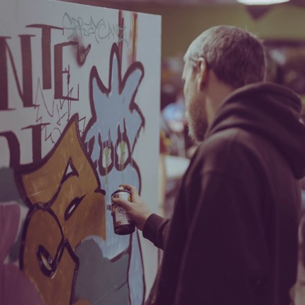 Patrick Forchild articule sa démarche artistique autour des pratiques de la peinture, du graffiti et de la photographie. L’artiste voyageur est aussi un entrepreneur accompli : la compagnie de vêtements AVIVE, qu’il dirige et dont il signe l’essentiel de la facture visuelle, a célébré ses 20 ans en 2024. Ses réalisations sont peuplées de personnages et de motifs récurrents qui évoluent au gré de ses déplacements et de ses rencontres. En effet, les expositions auxquelles il participe, sa passion pour le graffiti, les murales qu’il réalise et les nombreux projets collaboratifs auxquels il s’associe l’amènent à déambuler, d’un support à l’autre, entre urbanité et ruralité. Actif au sein de la communauté artistique de Québec, Patrick Forchild est également l’un des membres fondateurs de la Galerie Morgan Bridge.