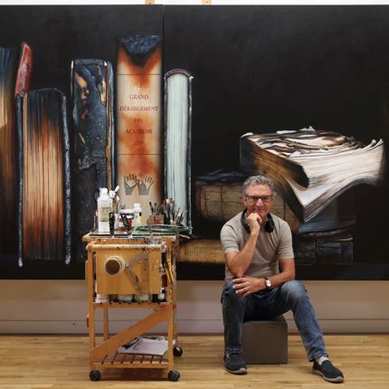 Son travail est une réflexion profonde sur les mécanismes de l’histoire, tant géopolitique que religieuse, environnementale ou culturelle. Depuis plusieurs années, l’artiste s’exprime par le biais de la peinture sans délaisser le dessin pour autant.