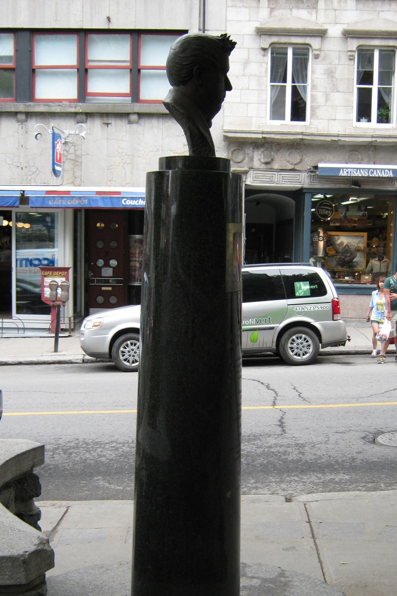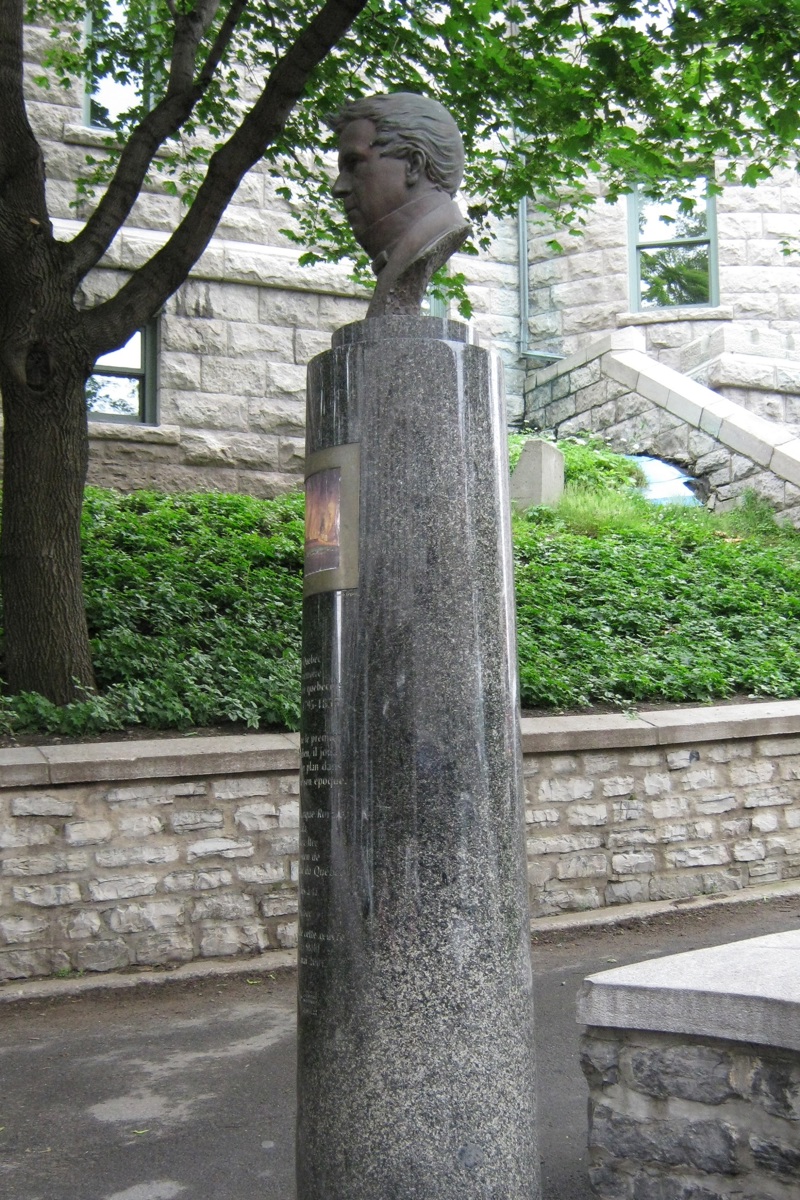 Joseph Légaré, considéré comme le premier peintre paysagiste canadien, a joué un rôle central dans la vie culturelle et sociale de Québec. Nombre de ses œuvres dépeignent des événements marquants et constituent de ce fait de véritables documents. C’est le cas du tableau L’incendie du quartier Saint-Jean à Québec (1845), reproduit sur le piédestal.