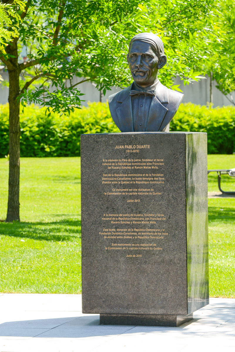 Conçu par le sculpteur Domingo Guaba, le buste de Juan Pablo Duarte a été dévoilé le 15 juillet 2015 par la Commission de la capitale nationale du Québec, en présence de la consule générale de la République dominicaine, madame Raquel Jacobo de Cabral et du directeur général des affaires bilatérales au ministère des Relations internationales et de la Francophonie, monsieur Jean Saintonge.