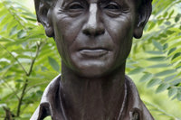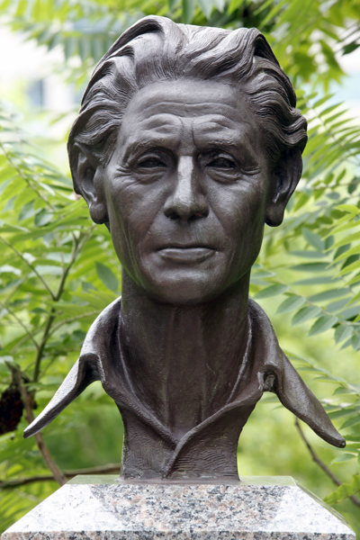 René Richard, peintre québécois d’origine suisse, est renommé pour ses paysages du Grand Nord et de Charlevoix, qu’il a peints dans des tons vibrants, avec une grande expressivité. Son buste surmonte un piédestal auquel est intégrée une reproduction du tableau Retour des chasseurs à la rivière George, Ungava, exécuté en 1949.