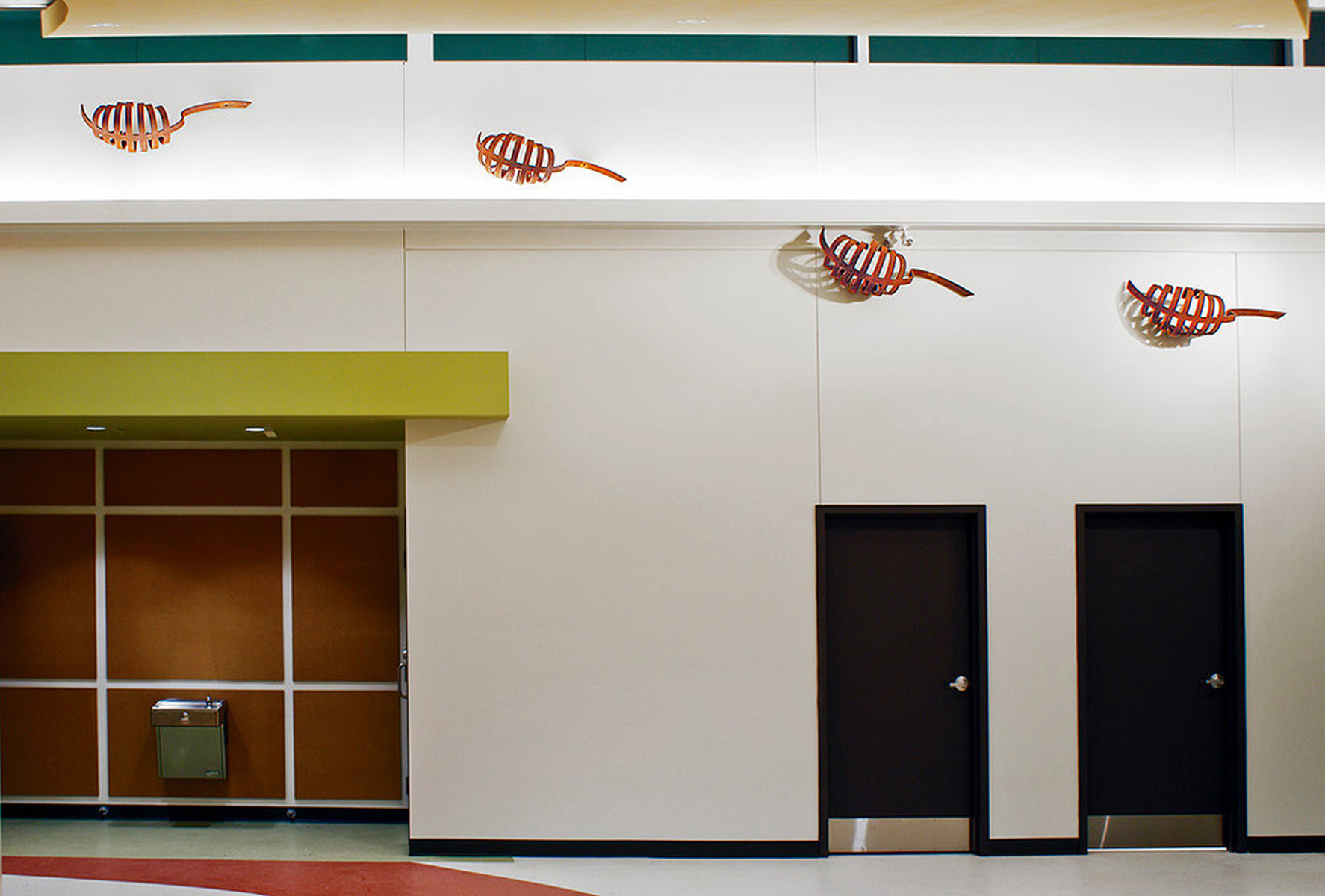 Cette installation est composée de 17 éléments ayant l’apparence de bestioles. Celles-ci longent les murs du corridor central, formant un parcours sinueux et rythmé que le regardeur est invité à suivre.