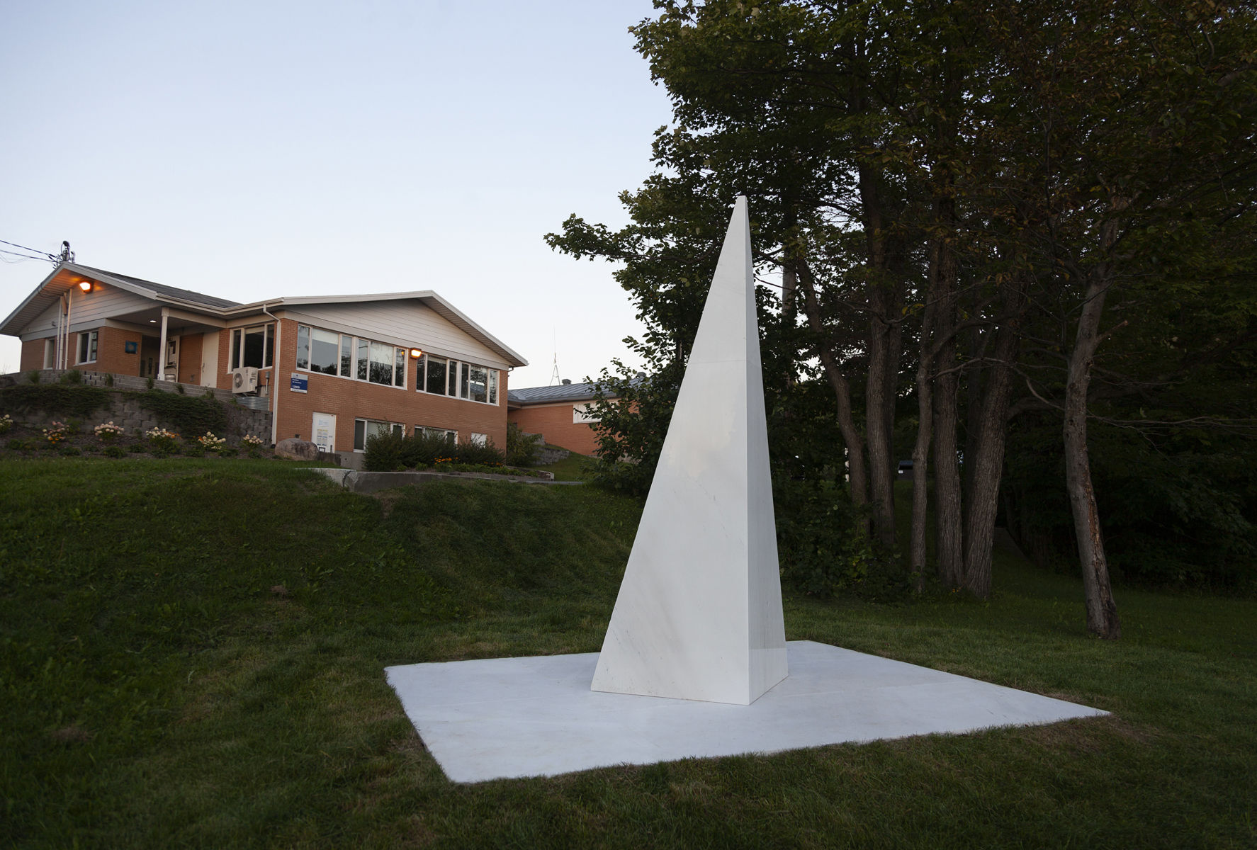 Posé sur une surface de marbre blanc, qu’il partage avec le visiteur, le monument s’élève, insaisissable, vers l’immensité. Alors que la couleur des arbres et la lumière retentissent sur le marbre, teintant légèrement sa blancheur, on oublie la taille imposante de l’œuvre pour s’ouvrir en douceur aux subtilités de l’environnement.