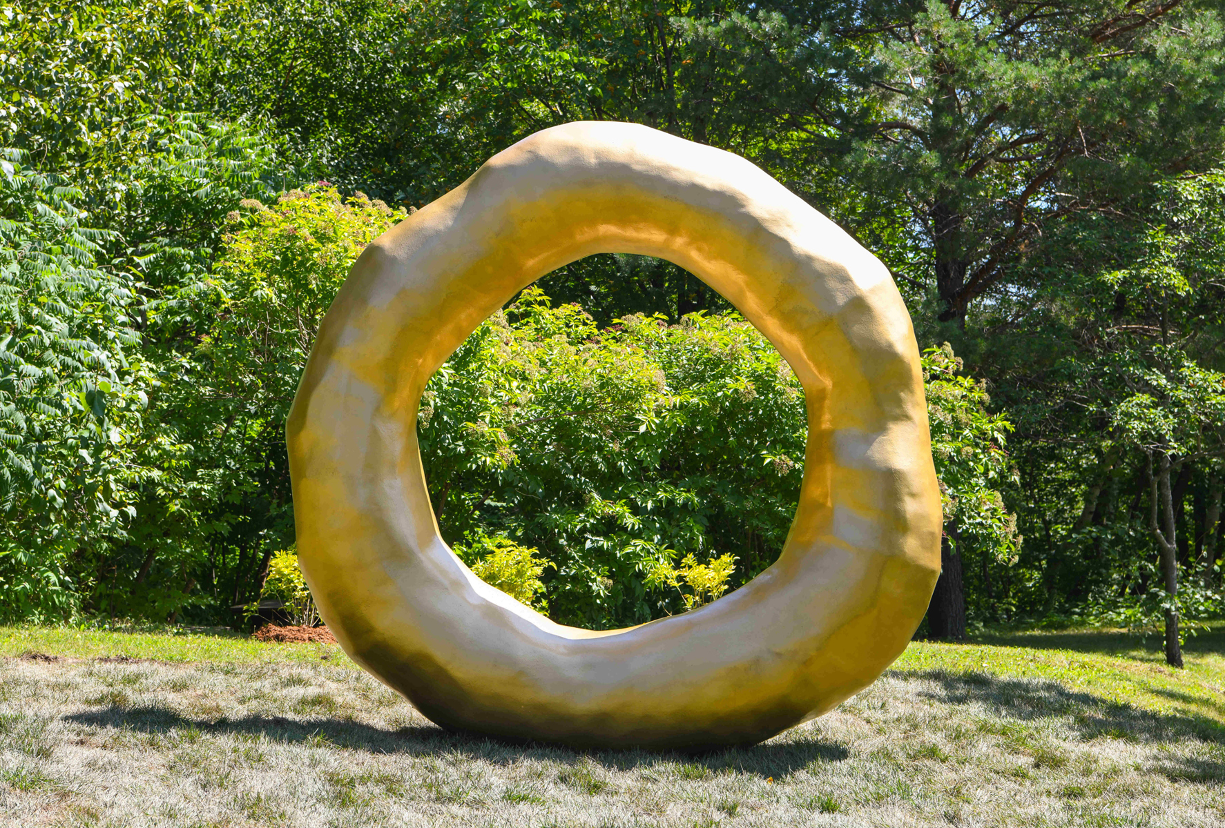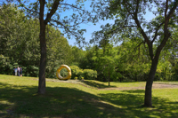Posé à l'entrée du parc, un grand anneau rutilant marque une transition entre l'espace habité et l'espace naturel. Sa couleur dorée est inspirée des arts décoratifs, comme la joaillerie et le mobilier, mais aussi de certains monuments publics ou religieux. L'intime y côtoie le grandiose.