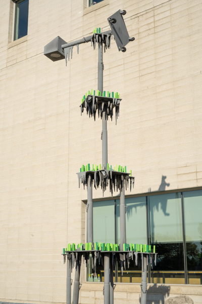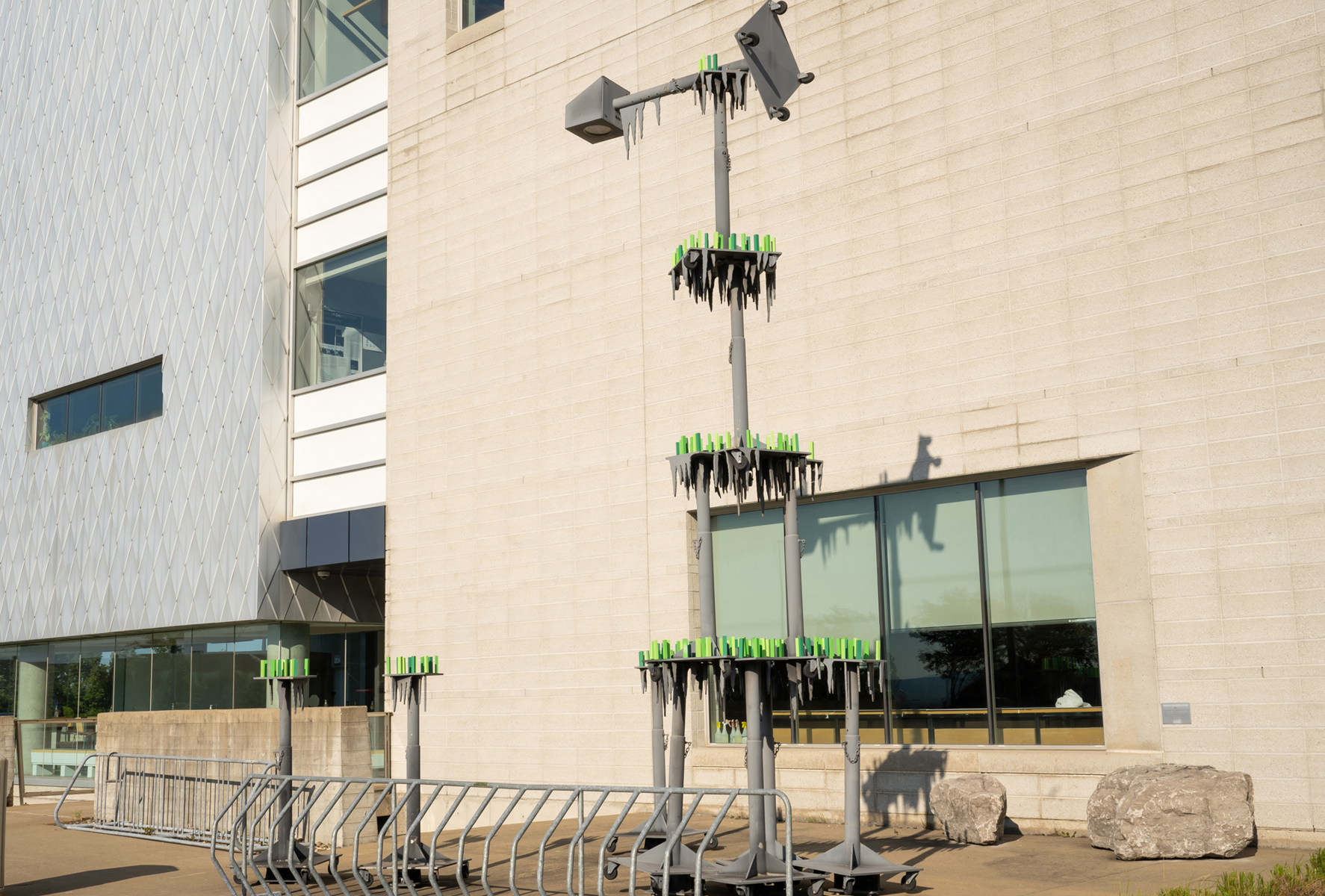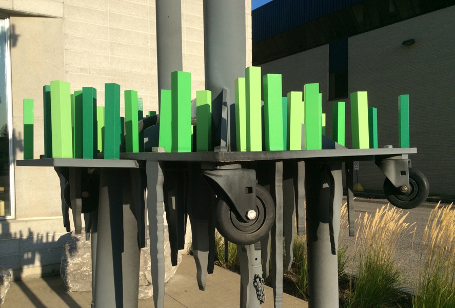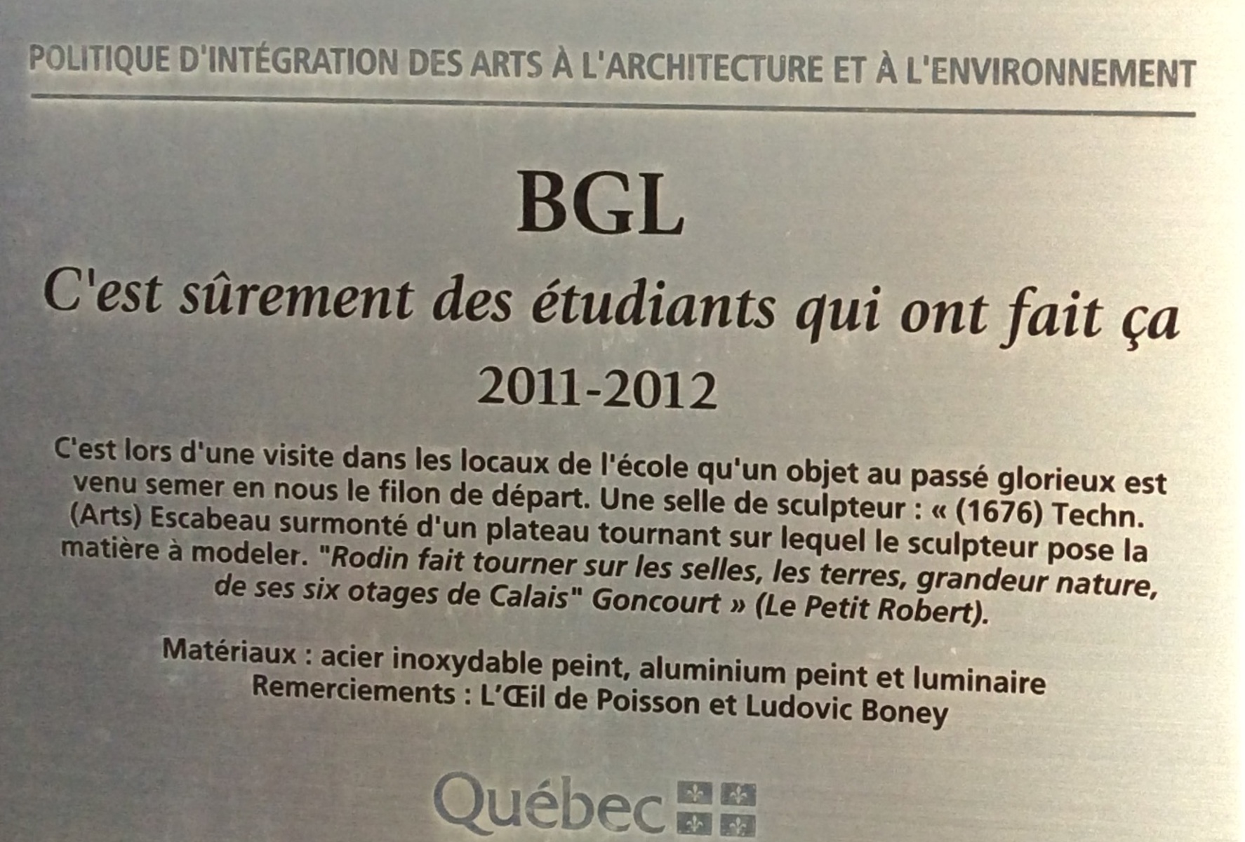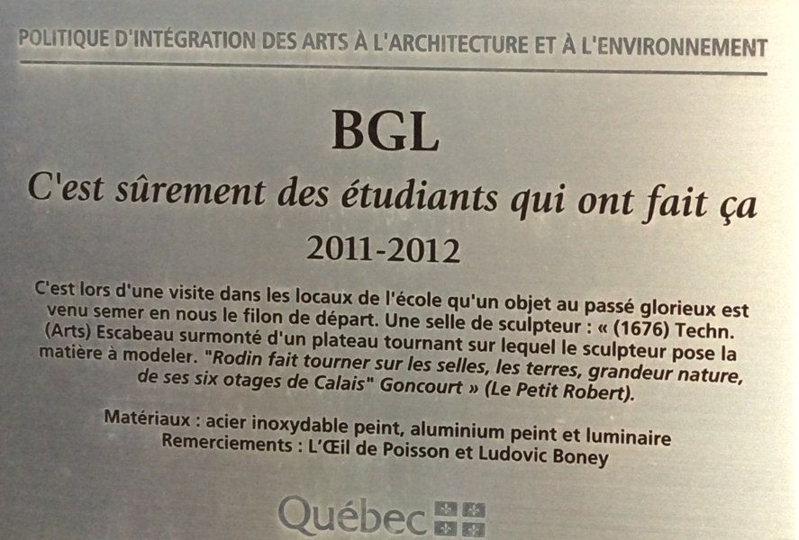 L'œuvre, réalisée dans le cadre de la Politique d’intégration des arts à l’architecture et à l’environnement, est située à l’arrière du Cégep de Sainte-Foy.