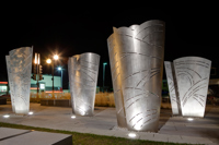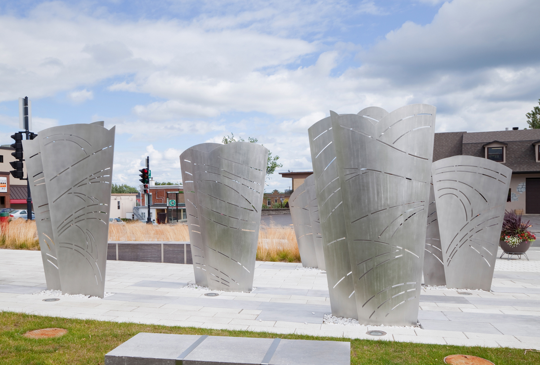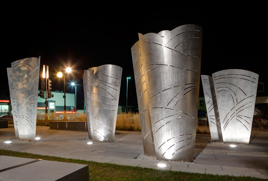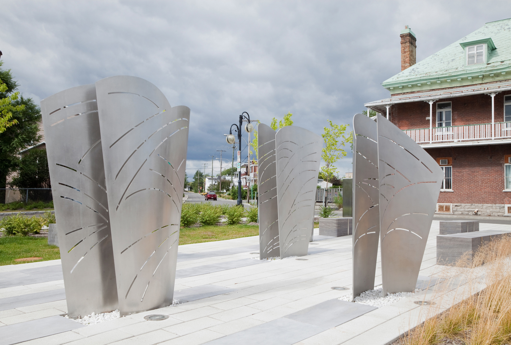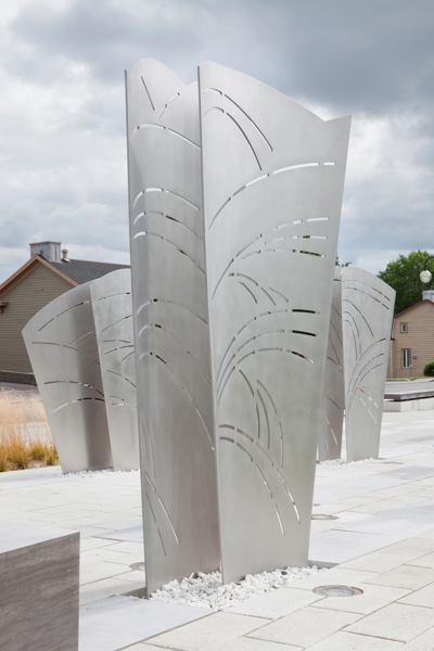 L’œuvre-fontaine qui anime la place du Vieux-Bourg a été réalisée à l’occasion du 375e anniversaire de Beauport. L’ensemble sculptural comprend cinq structures en acier aux formes courbes, entre lesquelles jaillissent par intermittence des gerbes d’eau. Les structures sont ornées de motifs ajourés suggérant le mouvement ondulatoire des vagues. L’artiste a voulu ainsi rappeler l’importance qu’ont eue les cours d’eau dans l’histoire de Beauport.