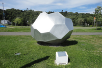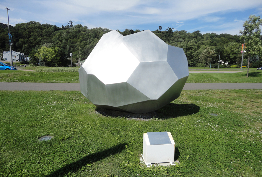 Le polyèdre convexe irrégulier comme élément de base, symbole de stabilité et de force, contraste par rapport à l’éclatement des formes intérieures qui suggère l’idée du dynamisme et du changement. Le polyèdre qui se referme dans un mouvement de convergence fait appel à l’idée de rassemblement. »