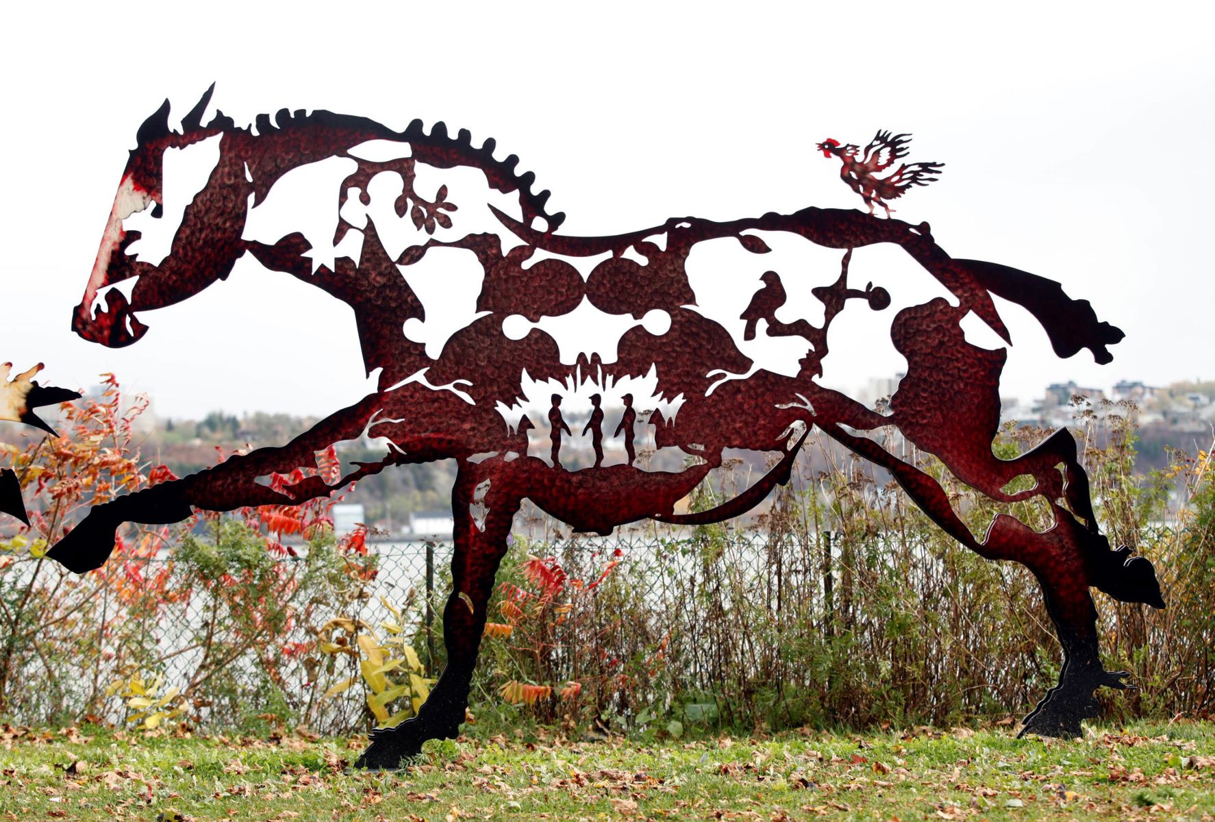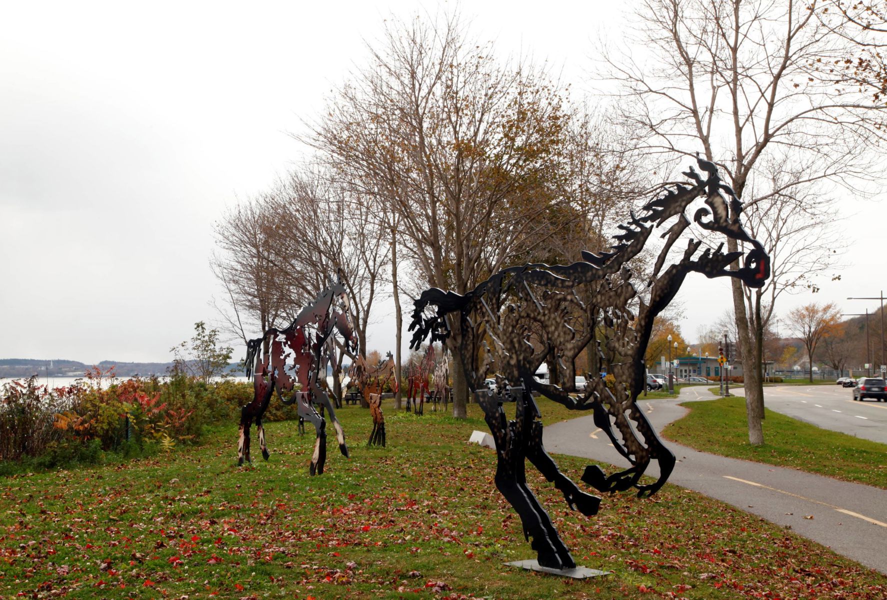 Huit chevaux en acier semblent galoper le long du fleuve et du boulevard Champlain. Leur silhouette est dynamisée par des motifs ajourés reproduisant des scènes et des personnages de l’histoire du pays. Une plaque commémorative souligne l’importance qu’a eue le cheval dans le développement de la Nouvelle-France et de l’Ouest canadien. L’œuvre est un don de la Ville de Calgary et du Calgary Stampede.