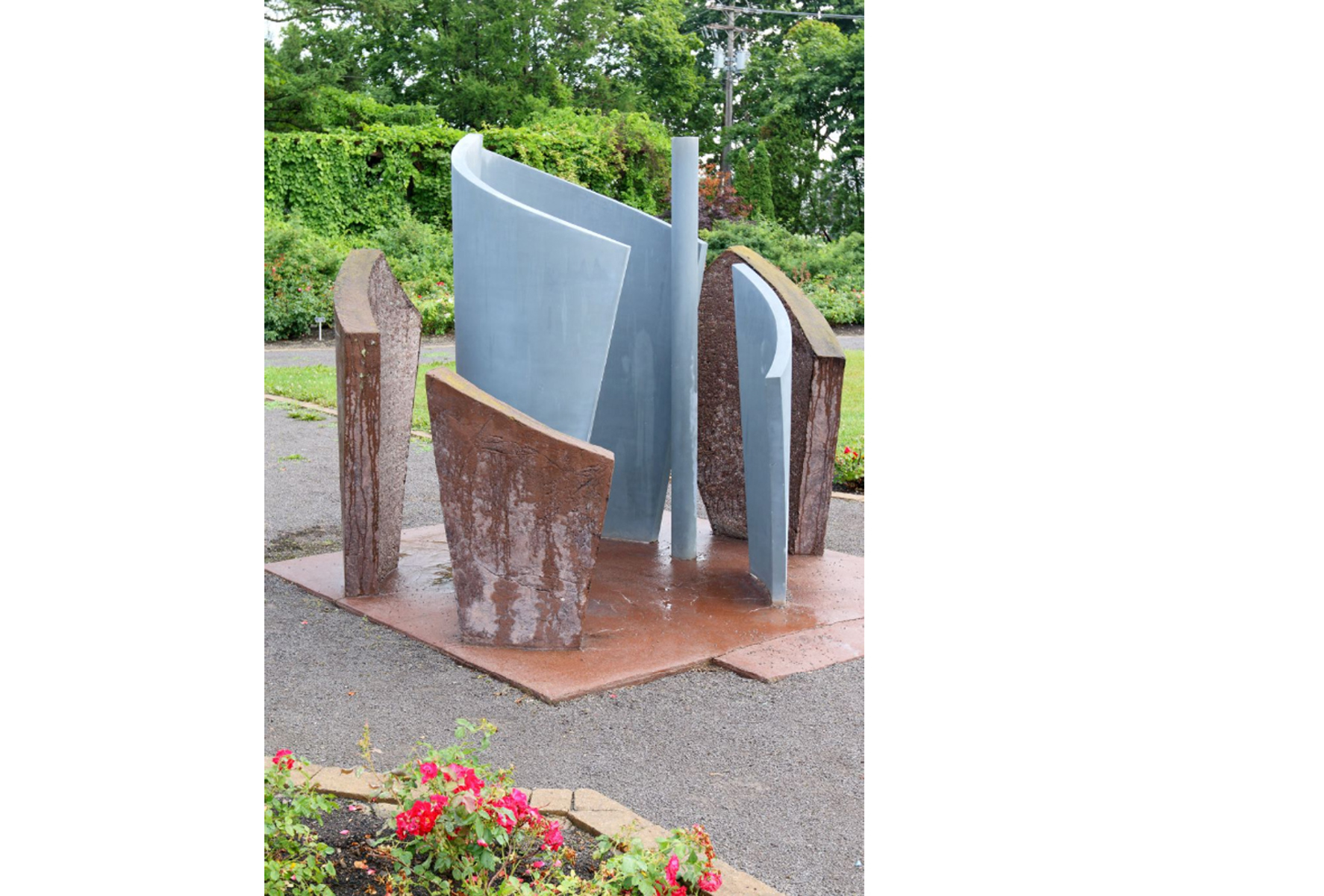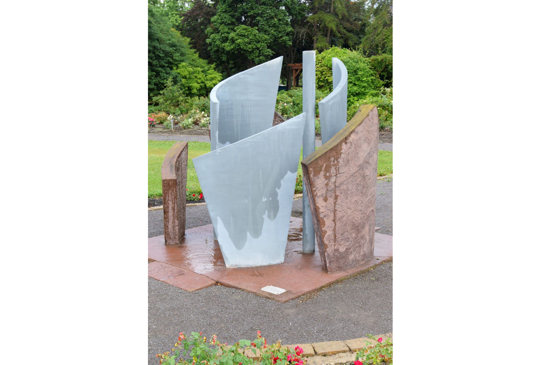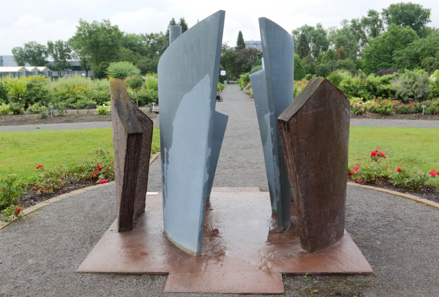 La sculpture représente l'Homme, la ville et la nature.