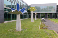 La sculpture représente cinq formes distinctes. La première forme est un papillon qui représente une étape de la chaîne alimentaire. Il s'agit d'un lépidoptère qui surprend par sa force et sa fragilité, mais surtout par sa beauté. Il a trois ailes dont une montre sa structure et fait penser à une dentelle et aux merveilles de la nature. La seconde forme, incrustée au sol, reprend le dessin des ailes du premier papillon. Elle fait le lien entre la première forme et le jardin situé à l'arrière du bâtiment.