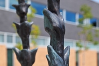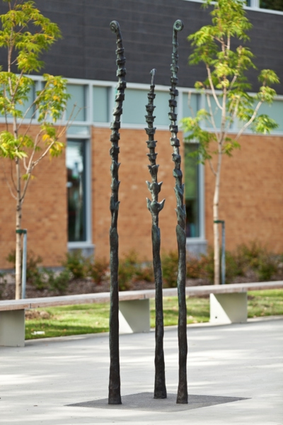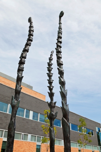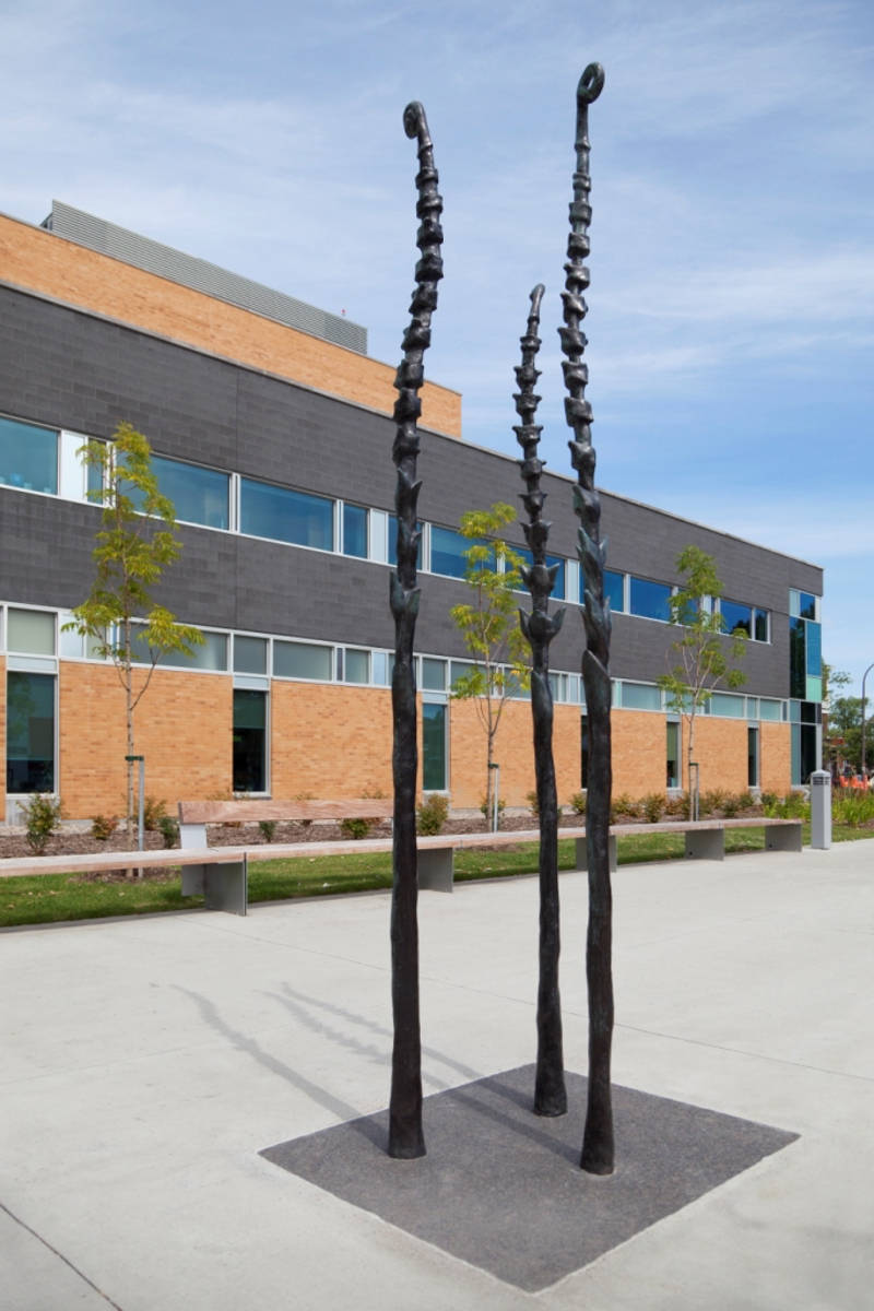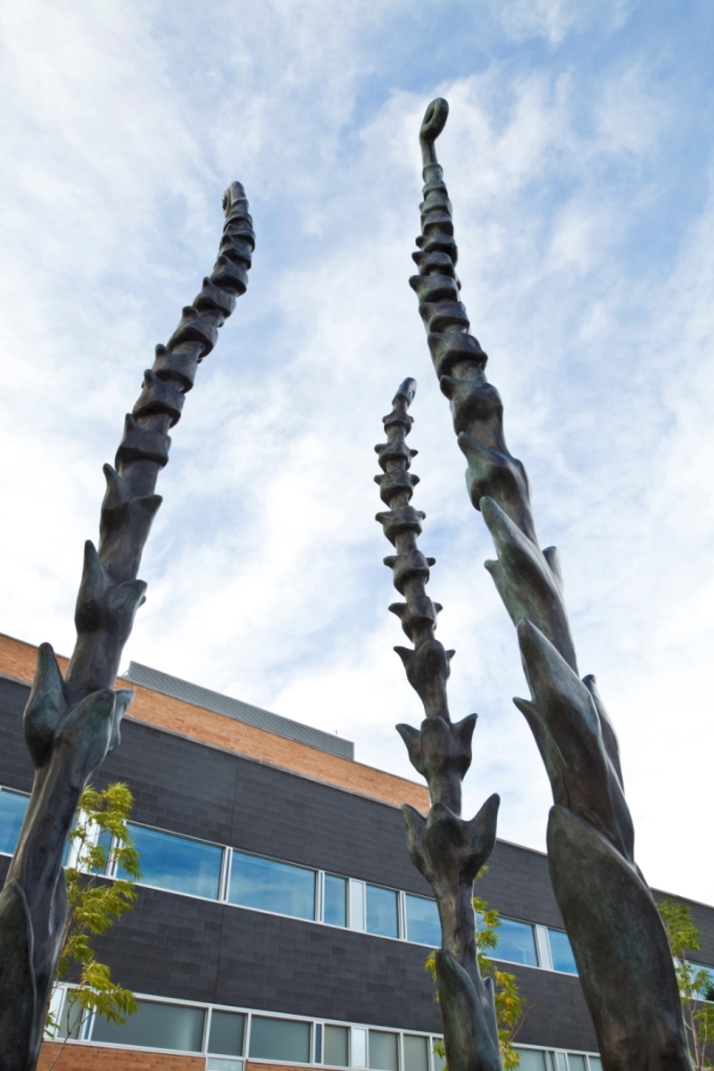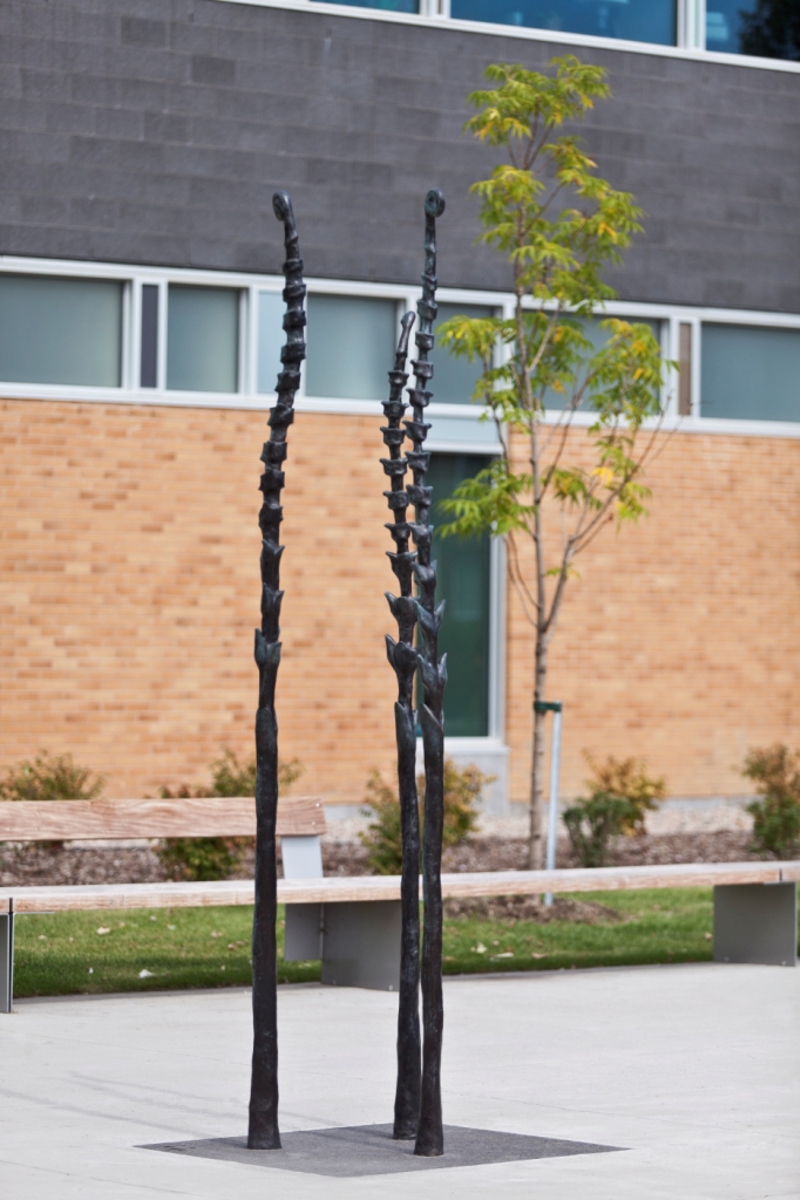 Ces fougères déploient avec fierté leurs feuilles de bronze sur le trottoir de Limoilou. L’une d’elles évoque la détermination d’Irma LeVasseur, première Québécoise francophone à devenir médecin. Les deux autres incarnent son héritage : l’hôpital de l’Enfant-Jésus, tout proche, et l’hôpital Sainte-Justine, à Montréal.