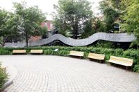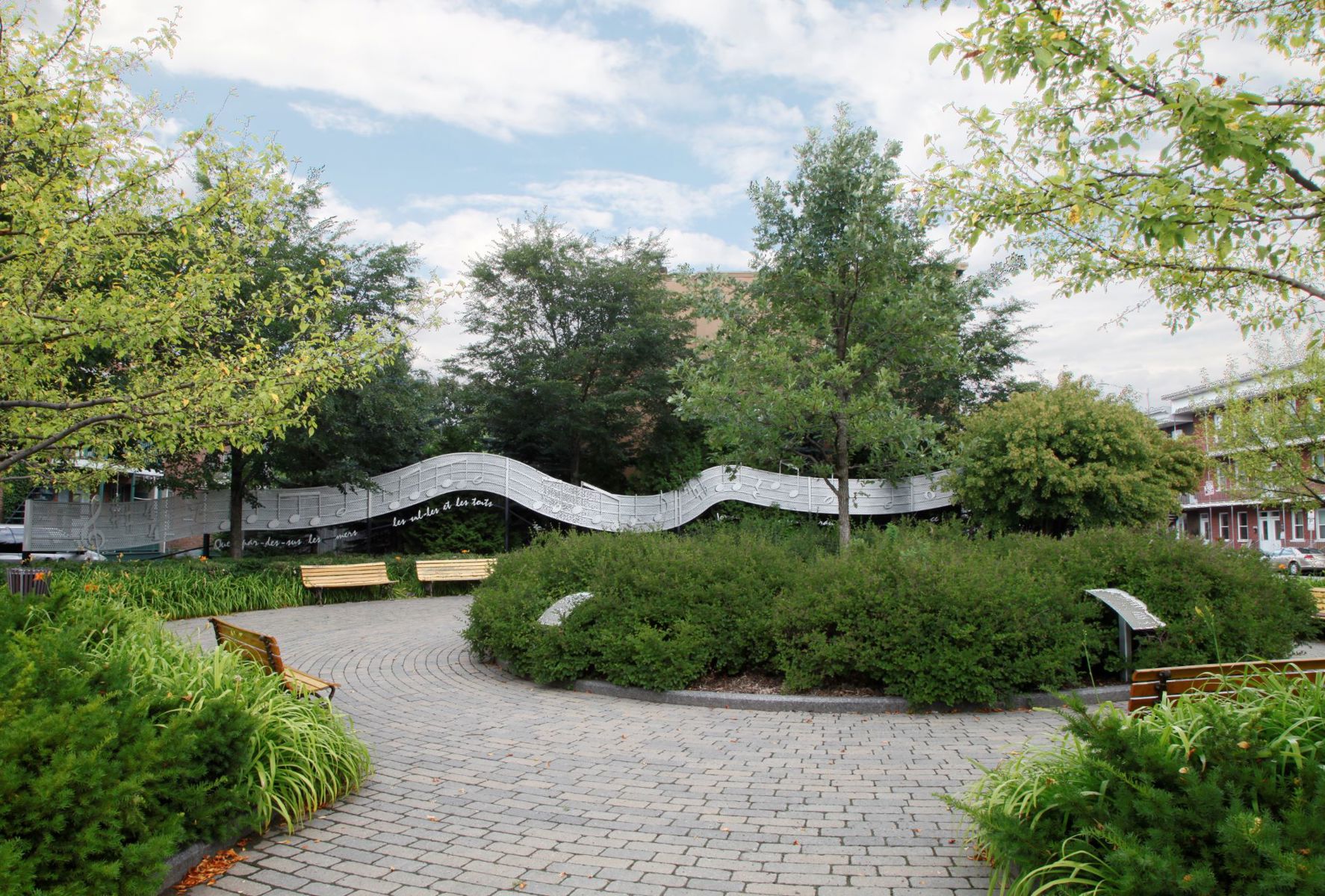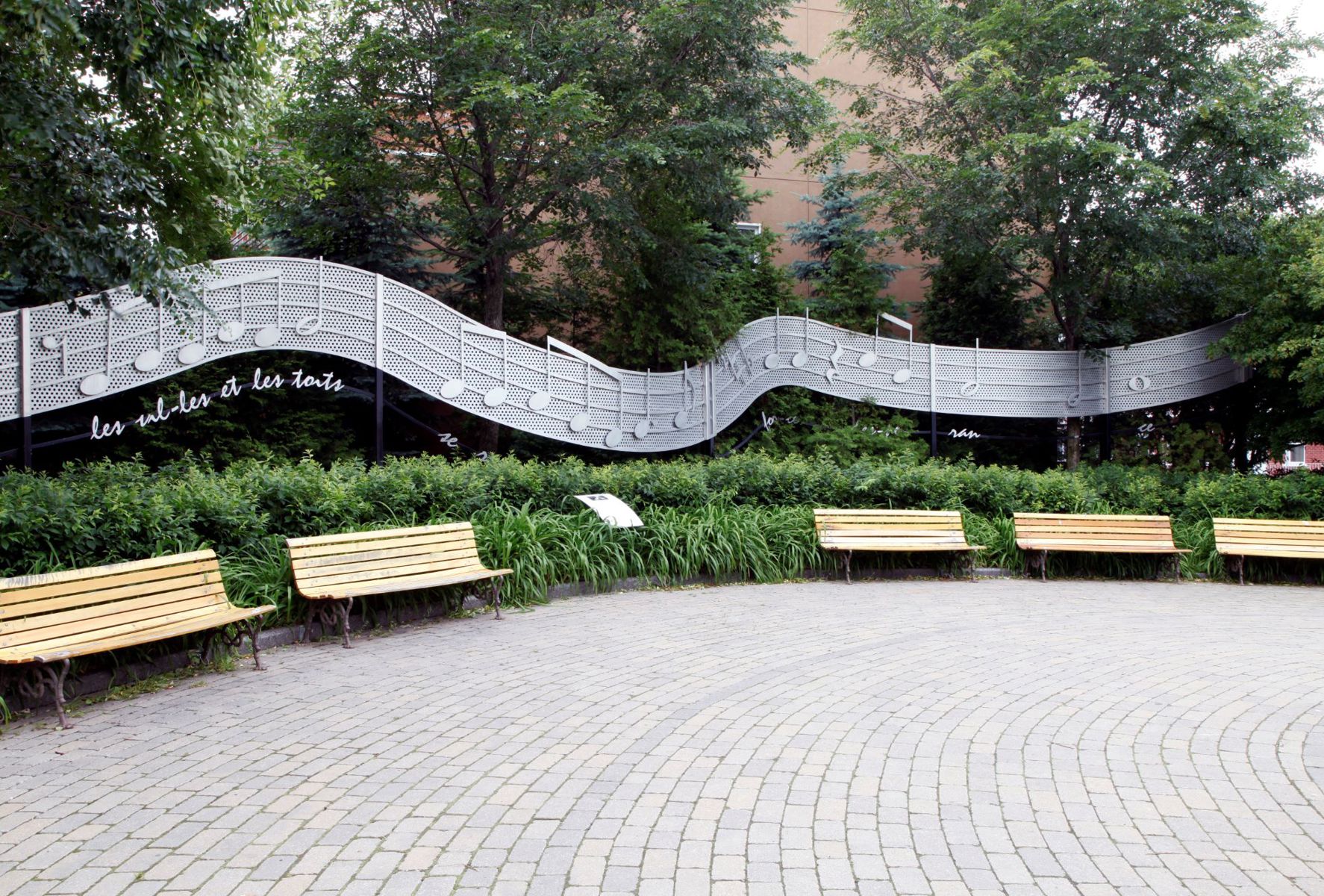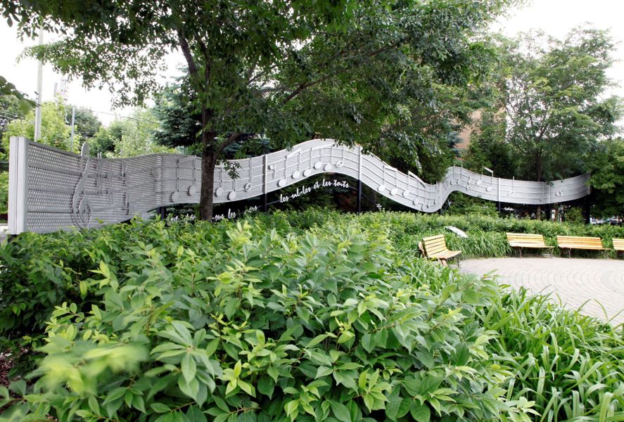 Sylvain Lelièvre (1943-2002) a chanté avec émotion les charmes de Limoilou, son quartier natal. Cette portée musicale en aluminium serpente dans le parc qui porte son nom. Sous les notes sont reproduits les vers finaux de sa chanson Toi l’ami : « Que par-dessus les mers, les villes et les toits / Se rejoignent nos mains à force d’espérance. » L’œuvre est la création commune d’un sculpteur et d’un architecte paysagiste.