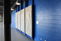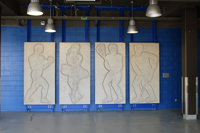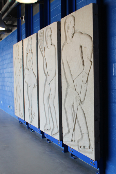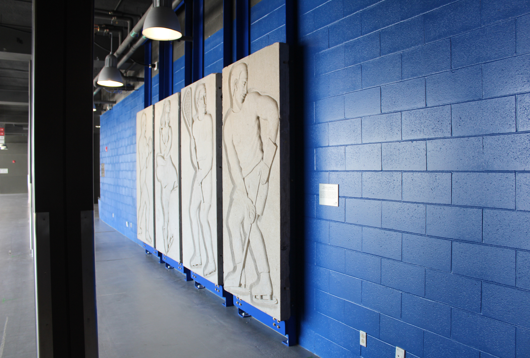 Ces bas-reliefs illustrent quatre activités populaires à Québec : la boxe, le patinage artistique, la crosse et le hockey. Ils ont été réalisés en 1950 pour orner le Colisée de Québec, construit l’année précédente. Intégrés à la façade du bâtiment, les bas-reliefs ont été déplacés dans le hall en 1981 lors de l’agrandissement du Colisée, puis réinstallés au Pavillon de la jeunesse en 2020. Les œuvres, en calcaire de la région du Niagara, sont attribuées à Raymond Delwaide, sculpteur sur pierre de l’entreprise de Québec Delwaide et Goffin Inc.