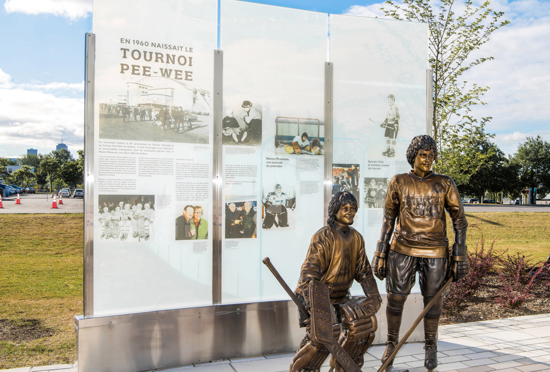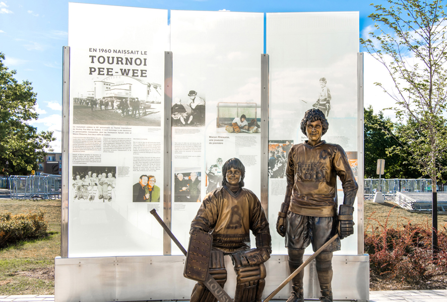 Ce monument célèbre le 60e anniversaire du Tournoi International de Hockey Pee-Wee de Québec. Il rend hommage à ses bénévoles et personnalités marquantes, dont les hockeyeurs Sylvain Côté et Manon Rhéaume, tous deux natifs de Québec.