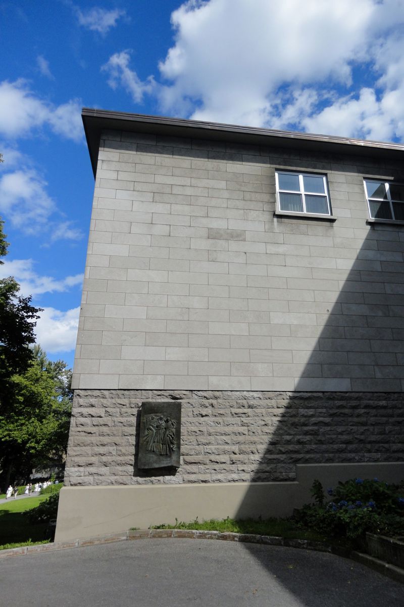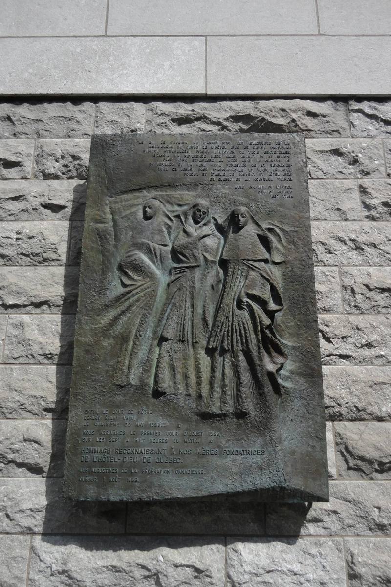 Apposé sur le mur extérieur du monastère, ce bas-relief commémore l’arrivée des trois premières Augustines en Nouvelle-France, le 1er août 1639. L’année 1989 marquait le 350e anniversaire de cet événement.
