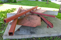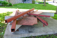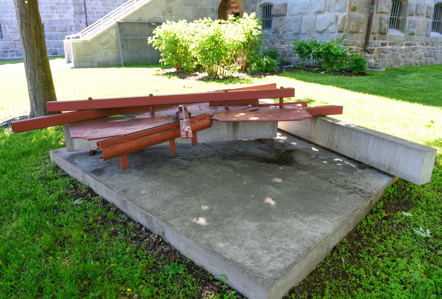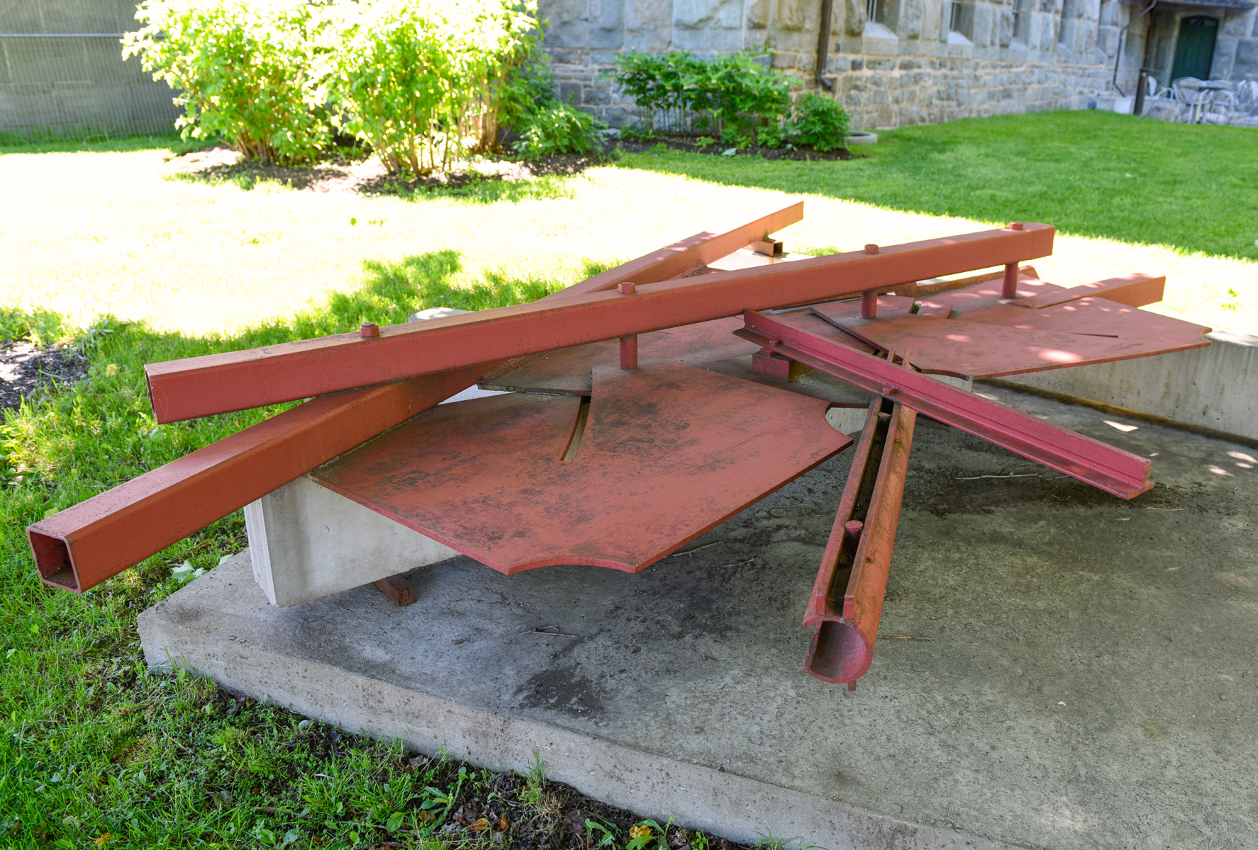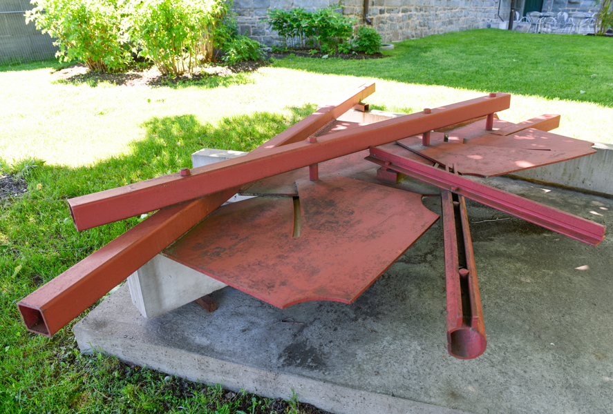 Déployant ses formes à l’horizontale et près du sol, Jacks fait partie de ces œuvres qui sont conçues pour s’intégrer à l’espace et participer au paysage. Les principes d’équilibre et de tension, sujet d’exploration récurrent chez l’artiste, y sont mis en évidence dans un réseau complexe de relations spatiales.