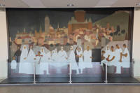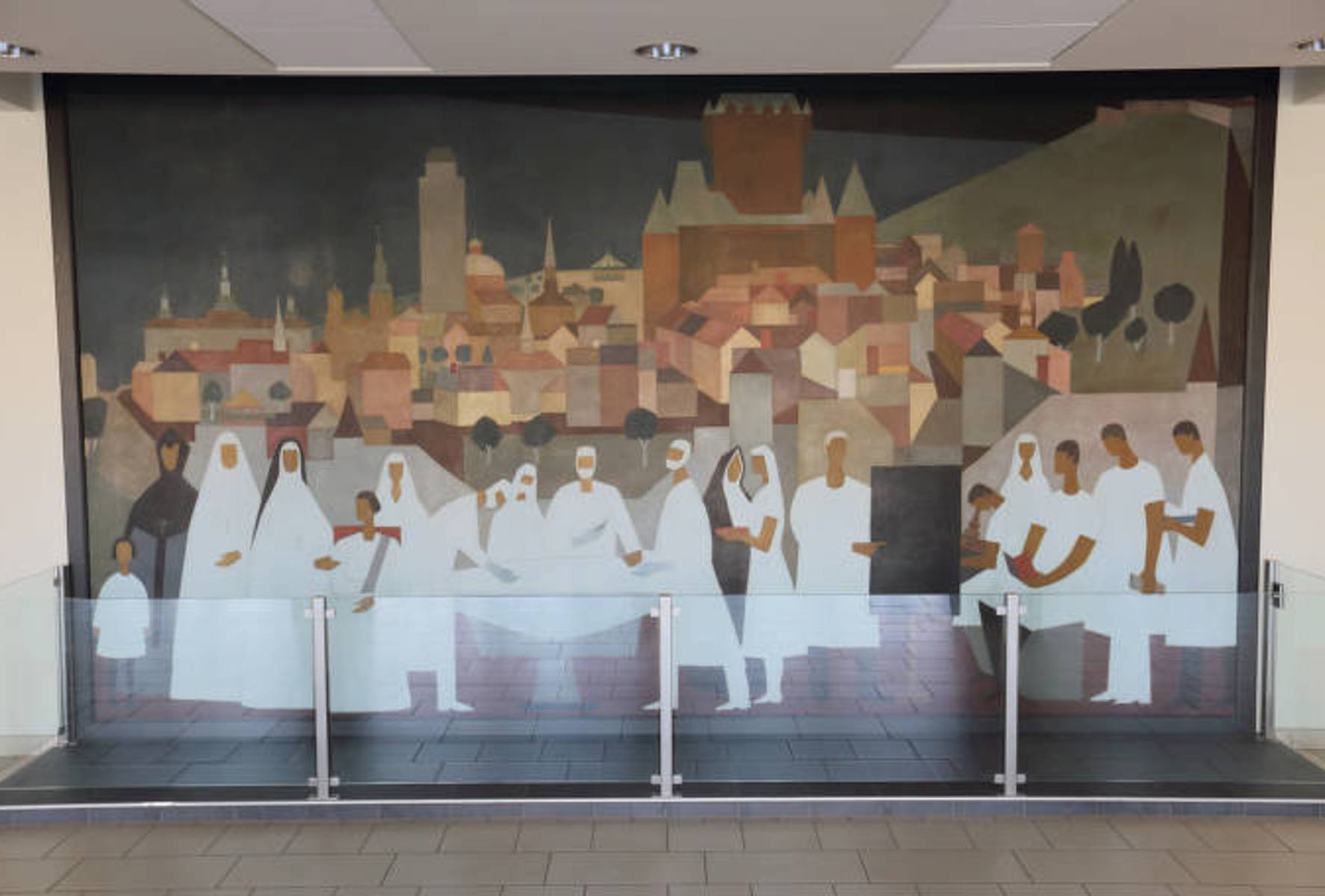 La peinture illustre l'histoire de la Médecine à Québec. En arrière plan est représentée le Vieux-Québec, foyer d'origine de la Faculté de médecine de l'Université Laval. Au premier plan sont représentés dix-neuf personnages rattachés au monde médical : religieuses, chirurgiens, infirmières, professeurs, étudiants, internes et patients. L'œuvre a été restaurée en 2011 et réinstallée à son emplacement original.