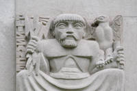 La sculpture représente Zeus, le roi des dieux grecs, accompagné de trois de ses attributs. De sa main droite, il tient le foudre, symbole de la puissance. Il s'agit d'une arme fabriquée par les Cyclopes Argès, Brontès et Stéropès qui y intégrèrent respectivement la foudre, le tonnerre et l'éclair. De sa main gauche, Zeus tient un sceptre qui, associé à l'aigle qui s'agrippe à son bras, est le symbole de l'inviolabilité, c'est-à-dire de l'immunité diplomatique.