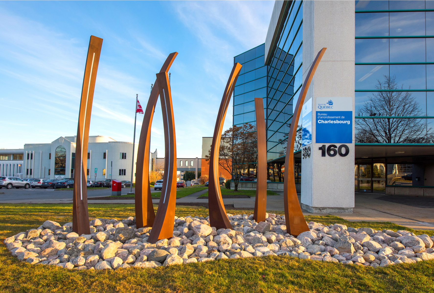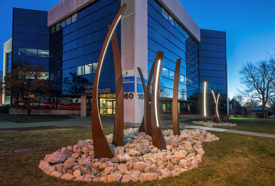 À la tombée du jour, chaque sculpture est éclairée de l’intérieur, reflet de la chaleur humaine qui anime les bénévoles. L’ensemble compose un parcours que l’on peut emprunter pour accéder au bureau d’arrondissement, lieu d’accueil symbolique de la collectivité.