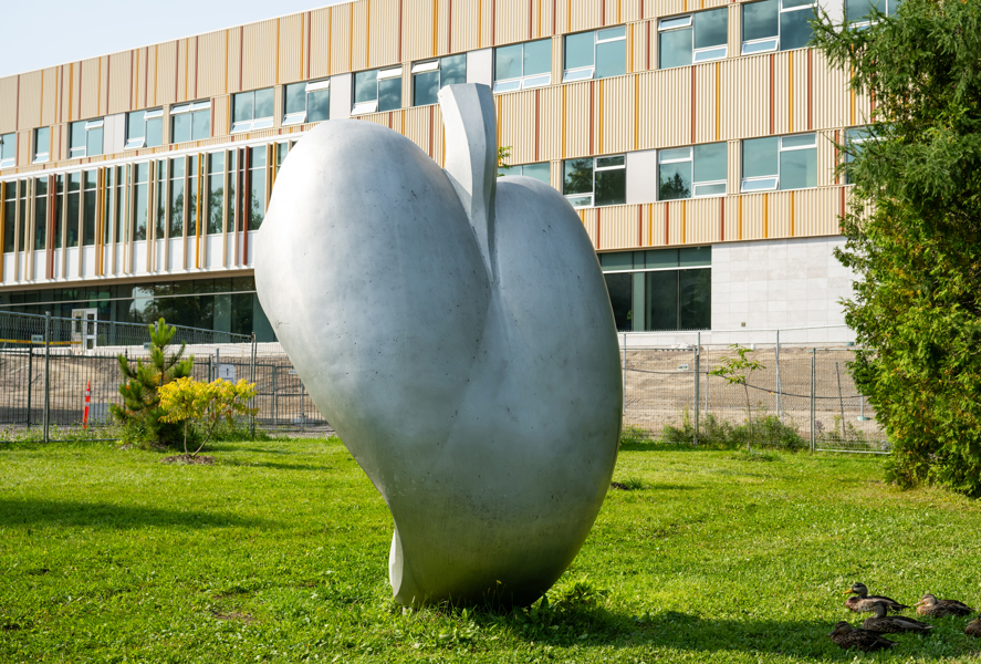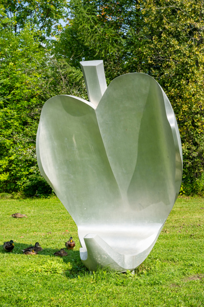 L'œuvre, qui évoque à la fois la forme d'un cœur et celle d'une feuille, a d'abord été installée au Jardin zoologique du Québec. Elle a été déplacée près de la rivière, dans le parc du Moulin, en 2008.