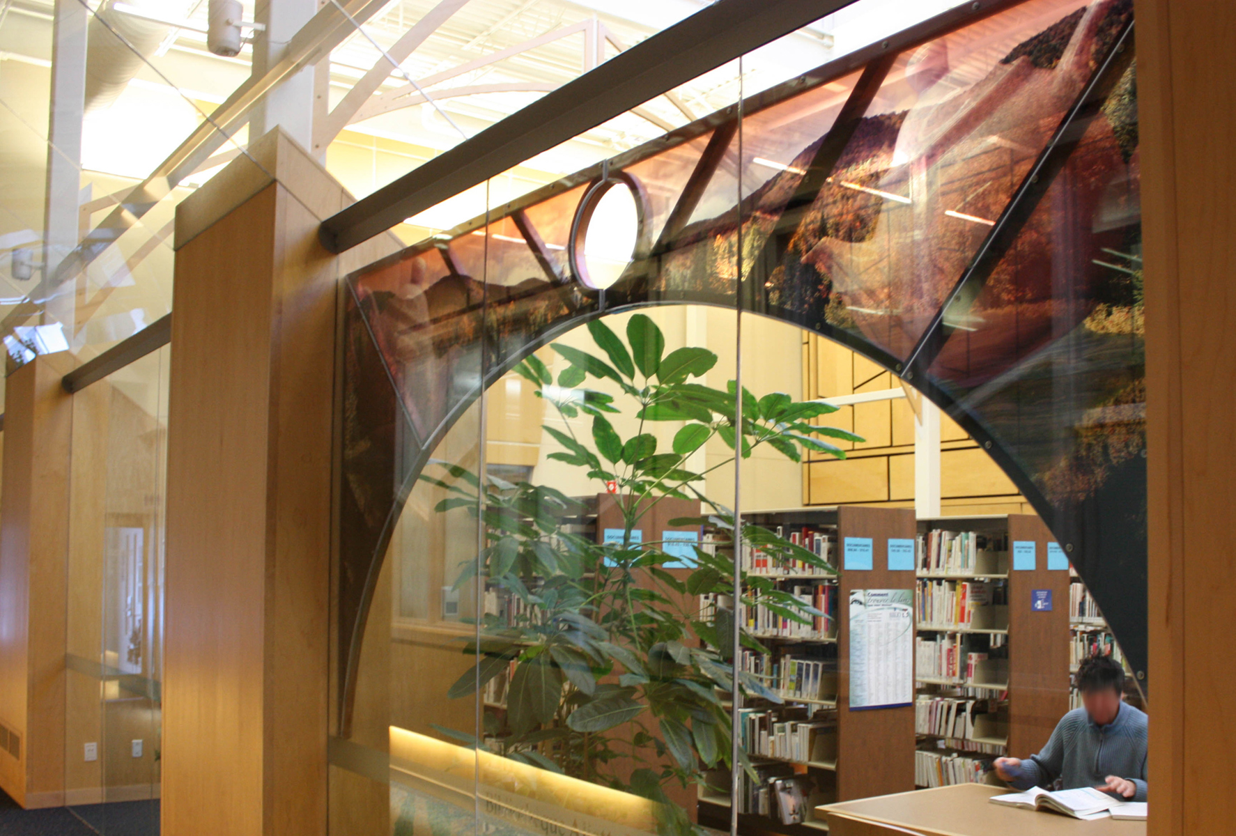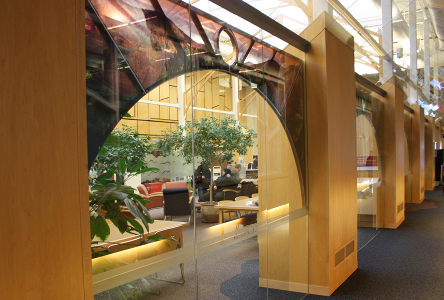 L’œuvre est composée de quatre arches qui servent de support à des photographies tout en transparence évoquant la nature.