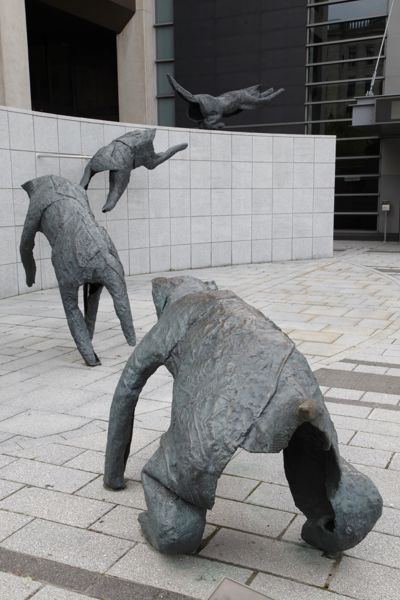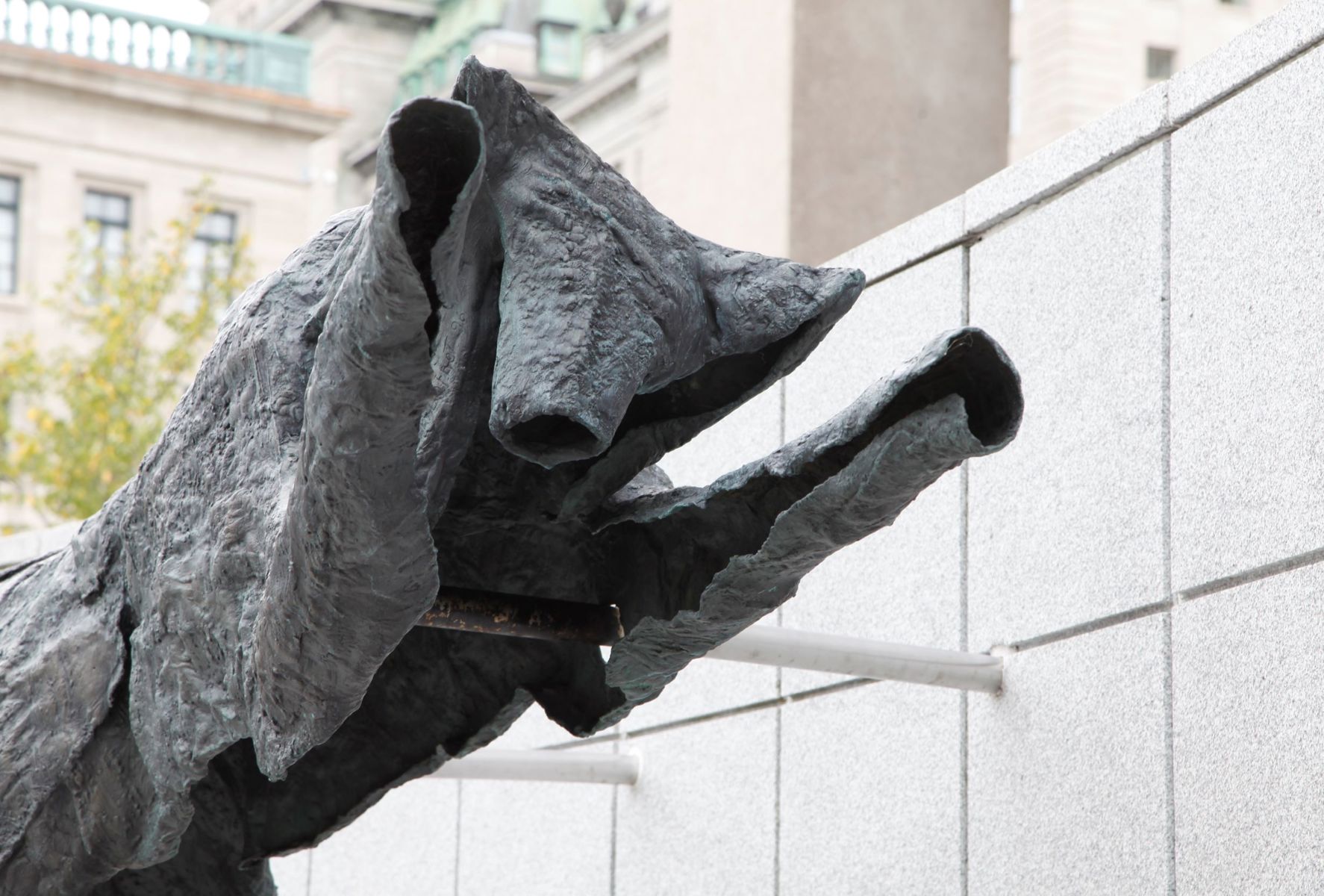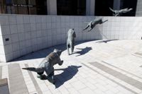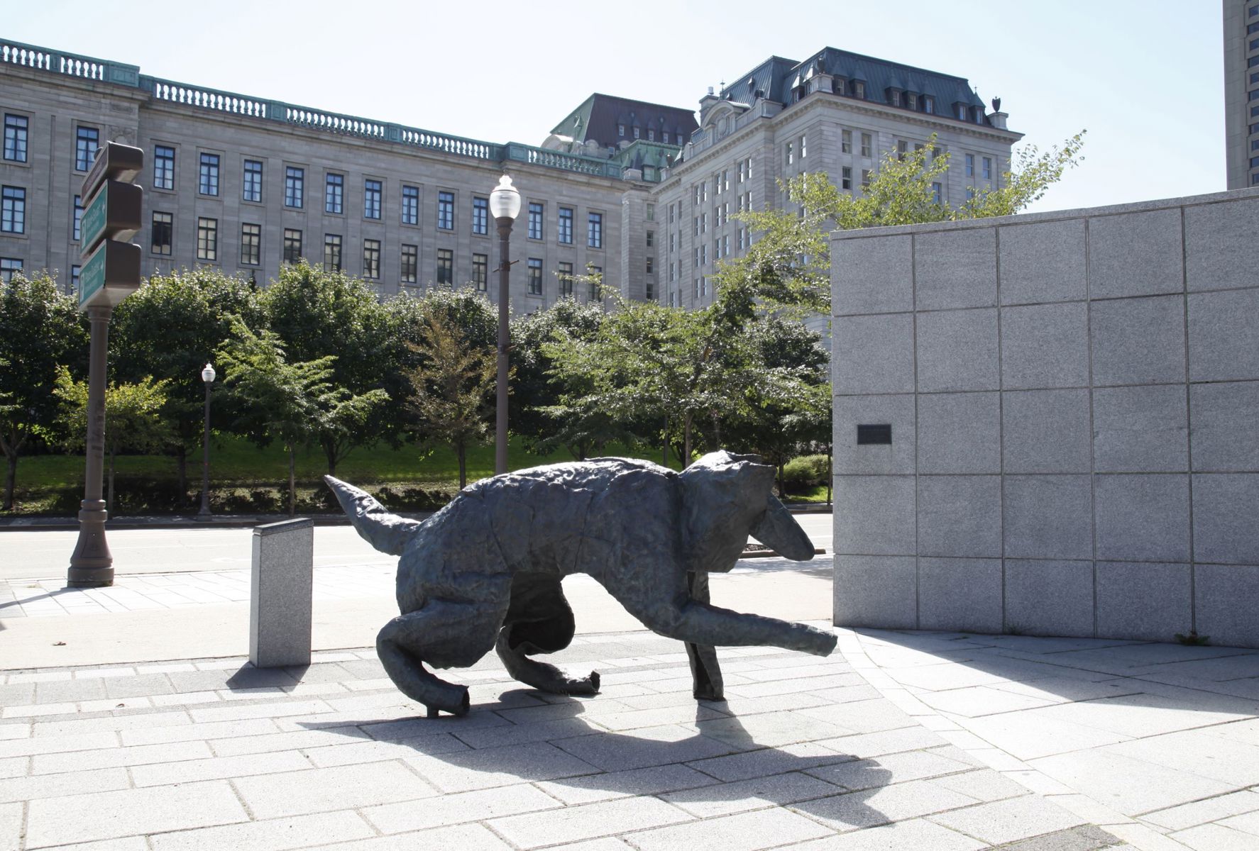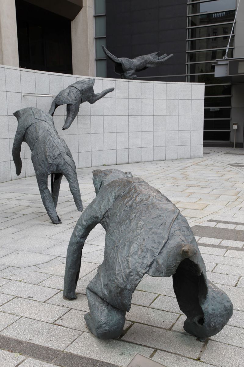 Bien intégré à l’architecture et à l’environnement urbain, ce groupe de bronzes reconstitue le mouvement d’un animal en plein élan.