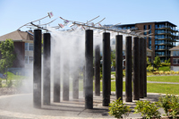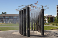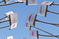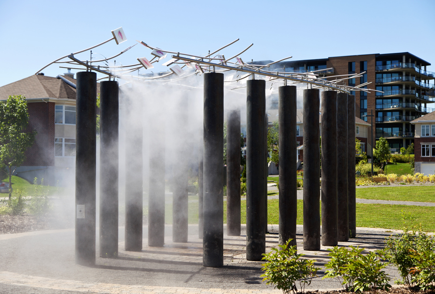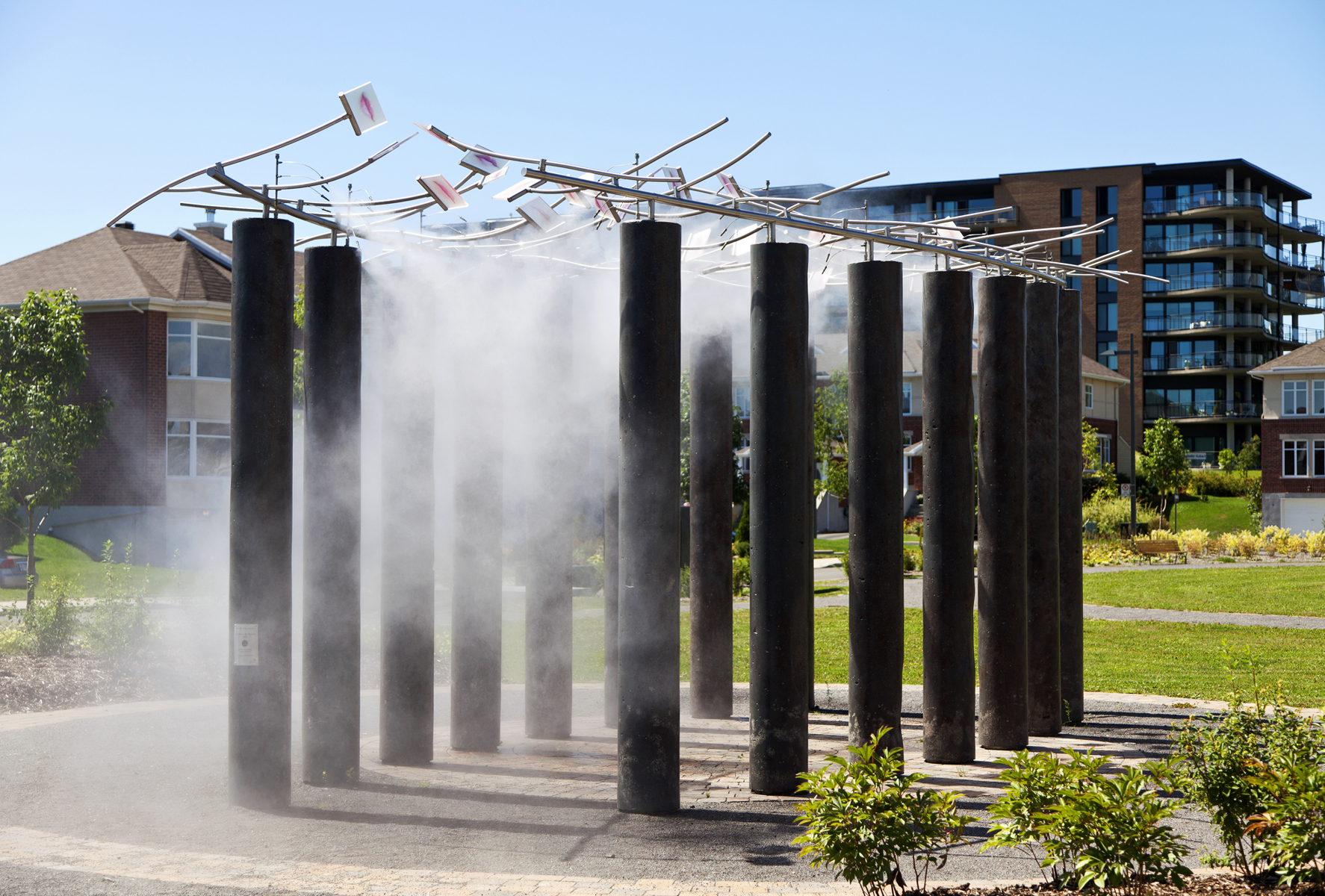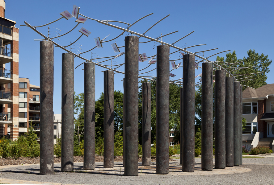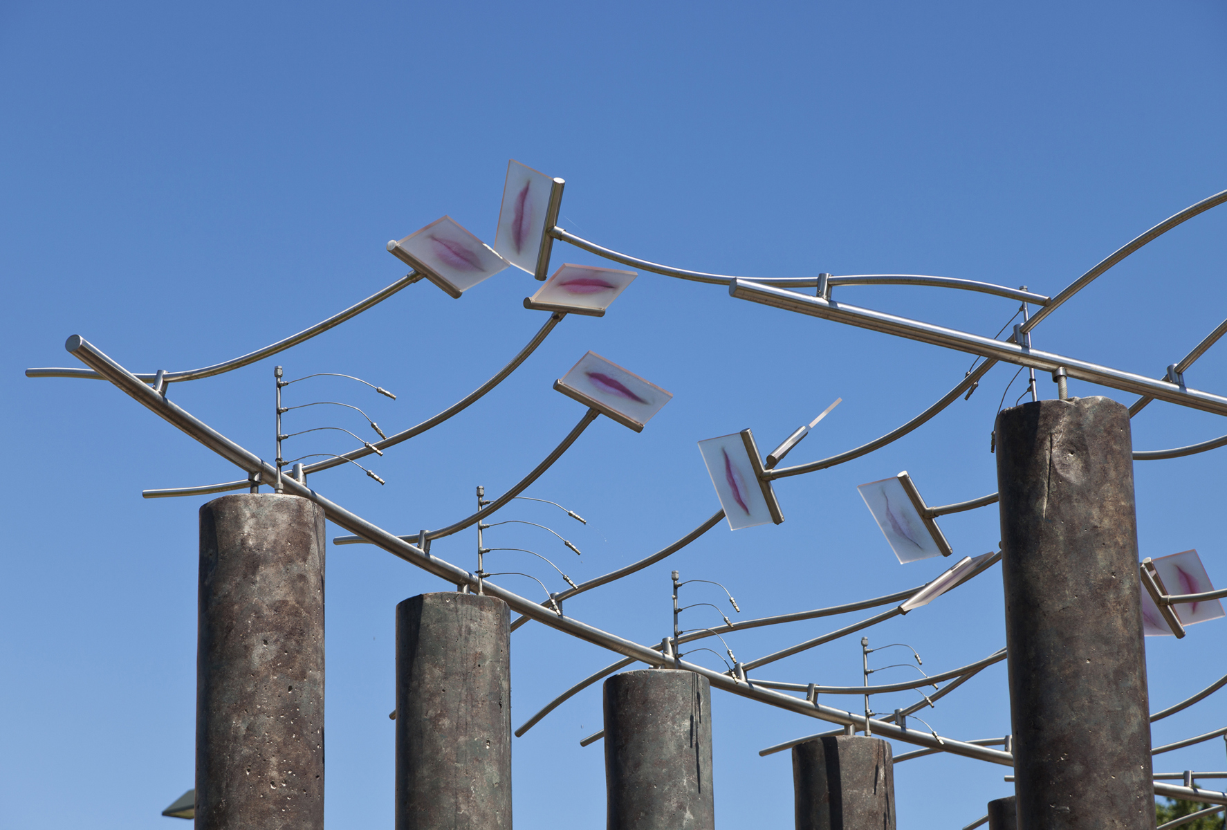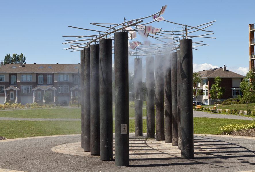 Conçu en hommage aux femmes qui ont contribué au développement de Québec, Le sentier des baisers agrémente le parc des Filles-du-Roi. Pour réaliser son œuvre, l’artiste a photographié des centaines de lèvres de femmes de tous les âges et a reproduit les images sur des plaques de verre. Il en a fixé un certain nombre à des tiges en acier inoxydable, qui elles-mêmes surmontent des colonnes en béton disposées sur deux rangées. Le promeneur qui déambule entre les colonnes a l’impression qu’un cortège de baisers l’accompagne. Des effets de bruine donnent à l’œuvre un aspect évanescent.