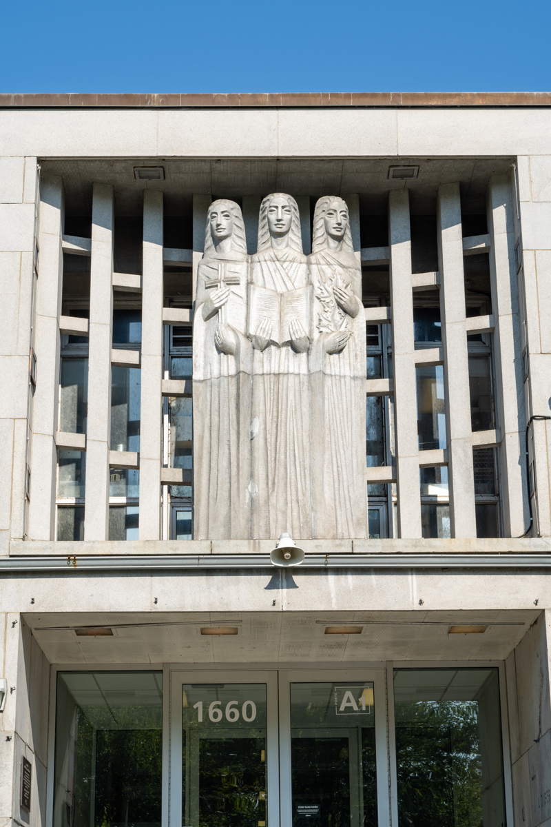 Trois personnages tiennent dans leurs mains une feuille d’érable, un livre ouvert et une croix, emblèmes respectifs de la Patrie, de la Connaissance et de la Foi. L’œuvre a été dévoilée lors de l’inauguration de l’École normale Laval, vouée à la formation des maîtres jusqu’en 1970 et devenue aujourd’hui un pavillon du cégep Garneau.