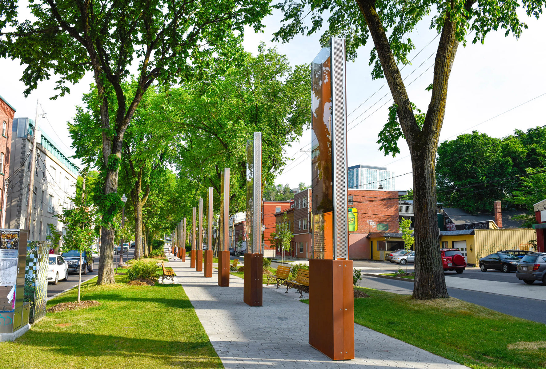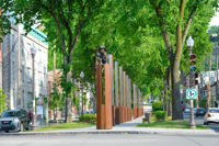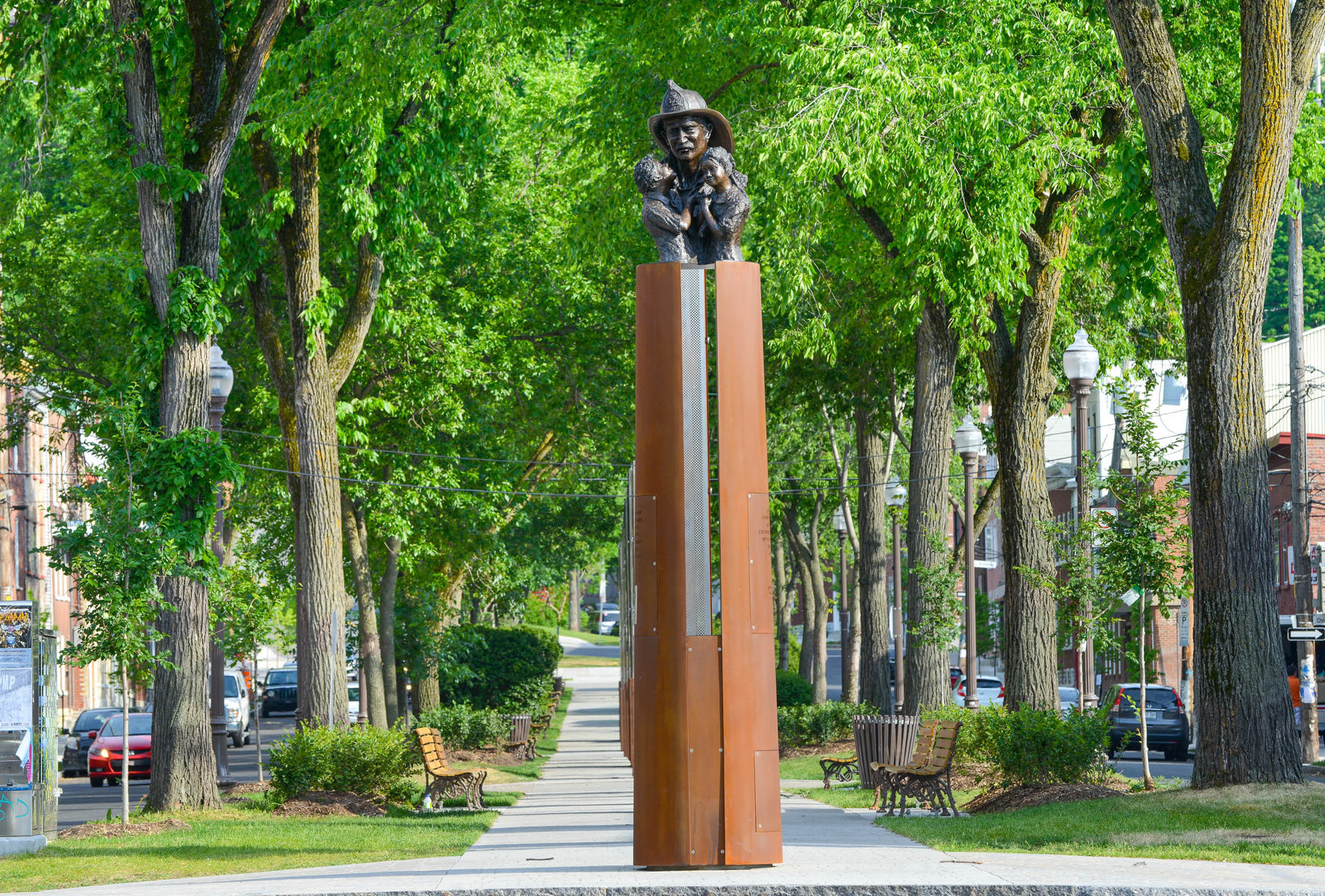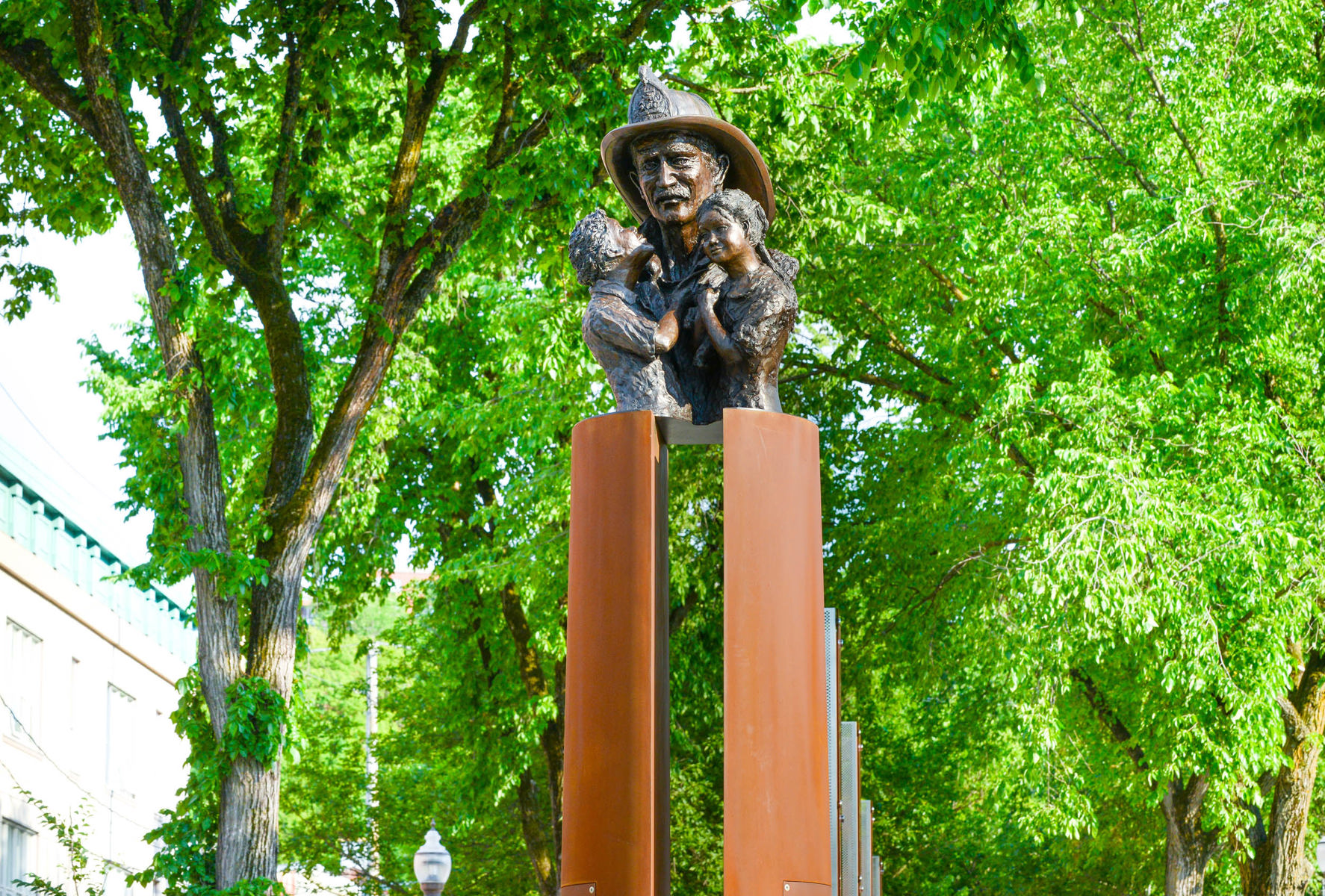 Cette sculpture d’un pompier tenant deux enfants dans ses bras exprime la fragilité de la vie, mais aussi la sagesse et la confiance acquises à travers la souffrance. Réalisée à l’occasion des Jeux mondiaux des policiers et pompiers tenus à Québec en 2005, l’œuvre a été intégrée au mémorial créé en 2016 sur le boulevard Langelier. Ce lieu de mémoire rend hommage aux pompiers morts en service et rappelle les terribles incendies qui ont ravagé la ville.