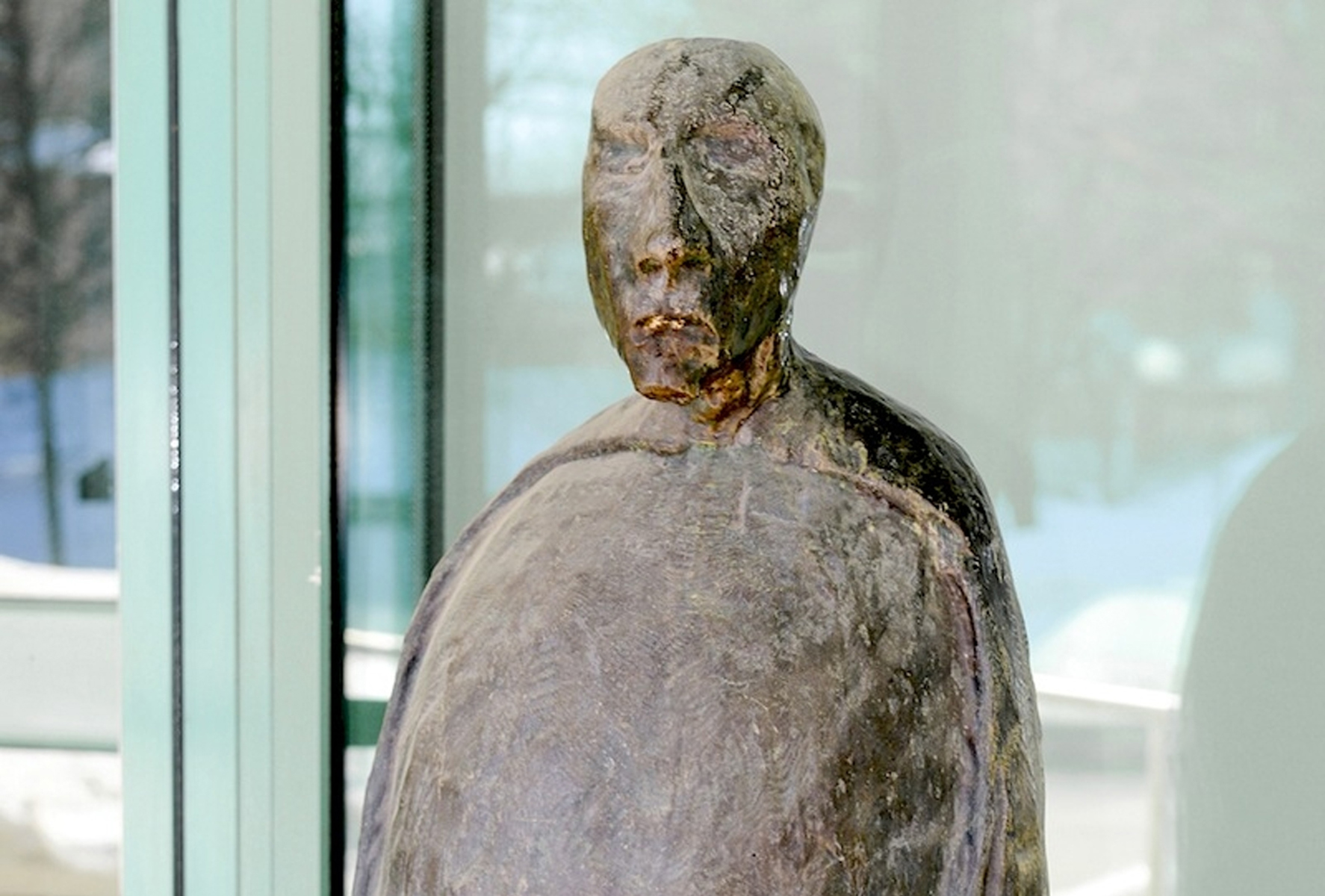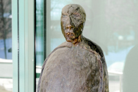 Reproduction en béton d’une sculpture sur bois, cette œuvre montre un personnage dont le corps est un pouce. Elle résulte d’un travail sur l’autoportrait et sur les handicaps existentiels, au coeur de la démarche de l’artiste.