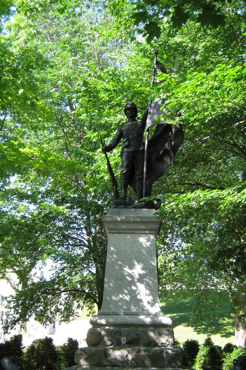 Ce monument rappelle que 12 soldats québécois ont été tués lors de la guerre des Boers (1899-1902), qui a opposé la Grande-Bretagne et les colons afrikaners en Afrique du Sud. Il s’élève sur les lieux mêmes d’où est parti le premier contingent canadien. Portant l’uniforme