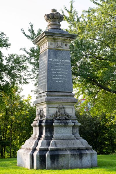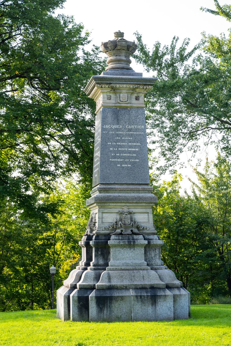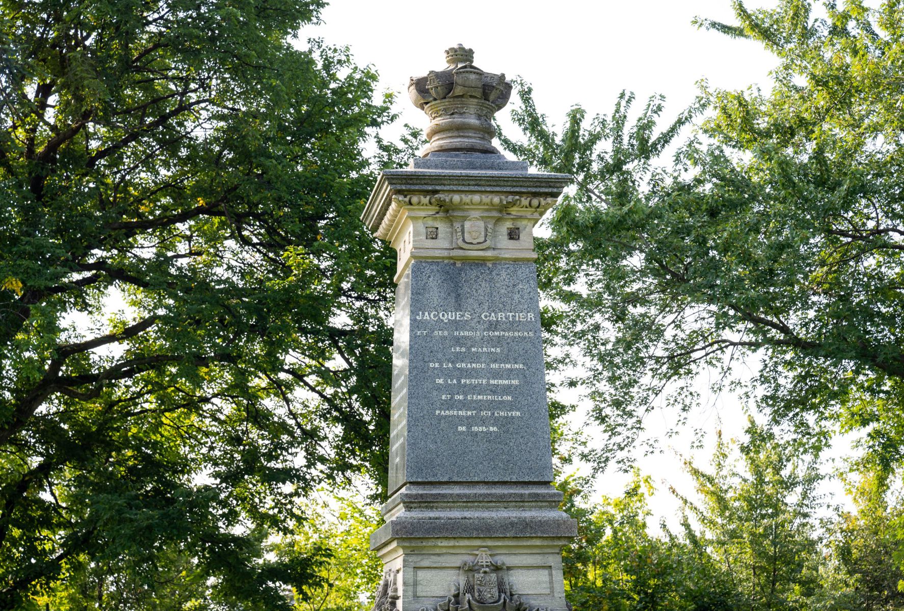 Ce monument commémore à la fois le site où Cartier passa l'hiver 1535-1536 et la première résidence des jésuites en 1625. L'idée d'ériger un monument à Cartier remonte à 1835, année du 3ème centenaire du débarquement de Cartier. Plusieurs projets de monument avaient alors été soumis : l'idée refait surface en 1882, dans une chronique des « Nouvelles Soirées Canadiennes ». Le 15 juillet 1886, le Cercle catholique de Québec achetait le terrain où devait être érigé le monument et lançait une campagne de souscription qui rapportait 5,083.91$. L'érection du monument a coûté 4,503.00$. Le projet comportait l'érection d'une croix et d'un monument. Le monument connu plusieurs propriétaires. Il appartient en tout premier lieu au Cercle catholique de Québec qui le donna en fidéicommis à la Corporation Archiépiscopale catholique romaine de Québec en octobre 1897. Il fut ensuite cédé à la corporation du curé de Saint-Roch en mars 1898, à la Ville de Québec en 1921, et au gouvernement fédéral en 1957.