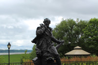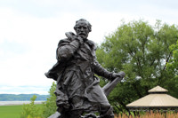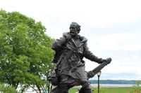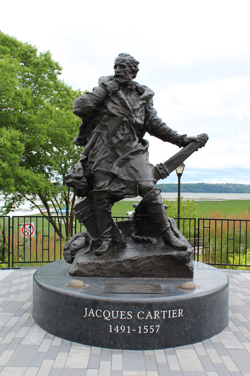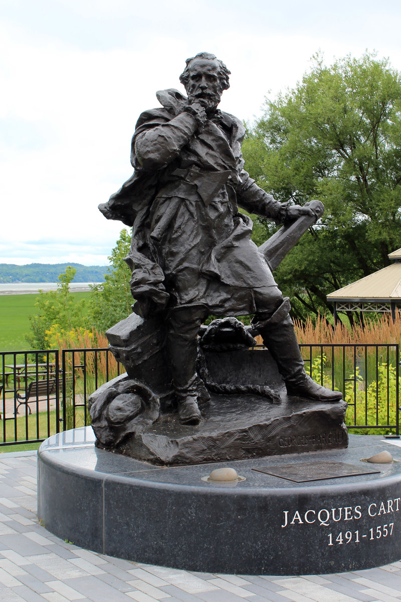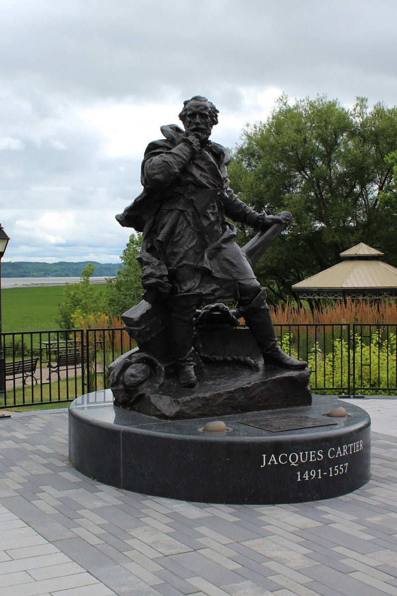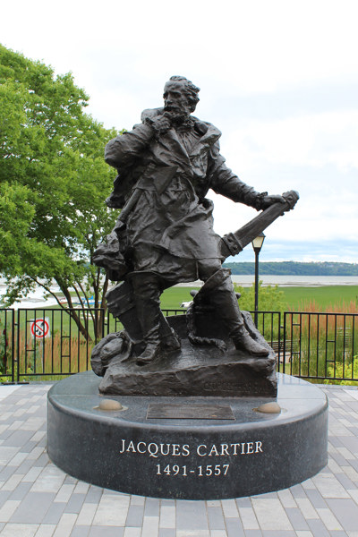 La statue en bronze de Jacques Cartier (1491-1557) est une réplique de celle qui a été érigée en 1905 sur les fortifications de Saint-Malo, ville natale du grand navigateur. Parti à la recherche d’une route vers l’Asie en 1534, Cartier se rend jusque dans le golfe du Saint-Laurent et, à Gaspé, prend possession du Canada au nom du roi de France.