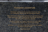 Dévoilée le 8 septembre 2010, cette sculpture de bronze a été offerte à la capitale du Québec par l’Association haïtienne de Québec. Elle rappelle l’homme politique et général haïtien François-Dominique Toussaint Louverture, qui fut le plus grand dirigeant de la Révolution haïtienne avant de devenir gouverneur de Saint-Domingue.