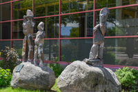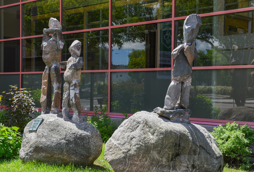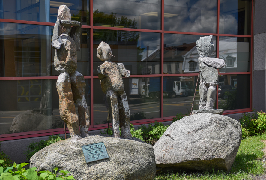 Cette sculpture formée d’un assemblage de pierres représente trois musiciens : un joueur d’harmonica, un flûtiste et un guitariste. De grosses pierres lui servent également d’assise.