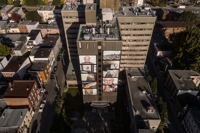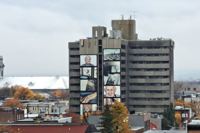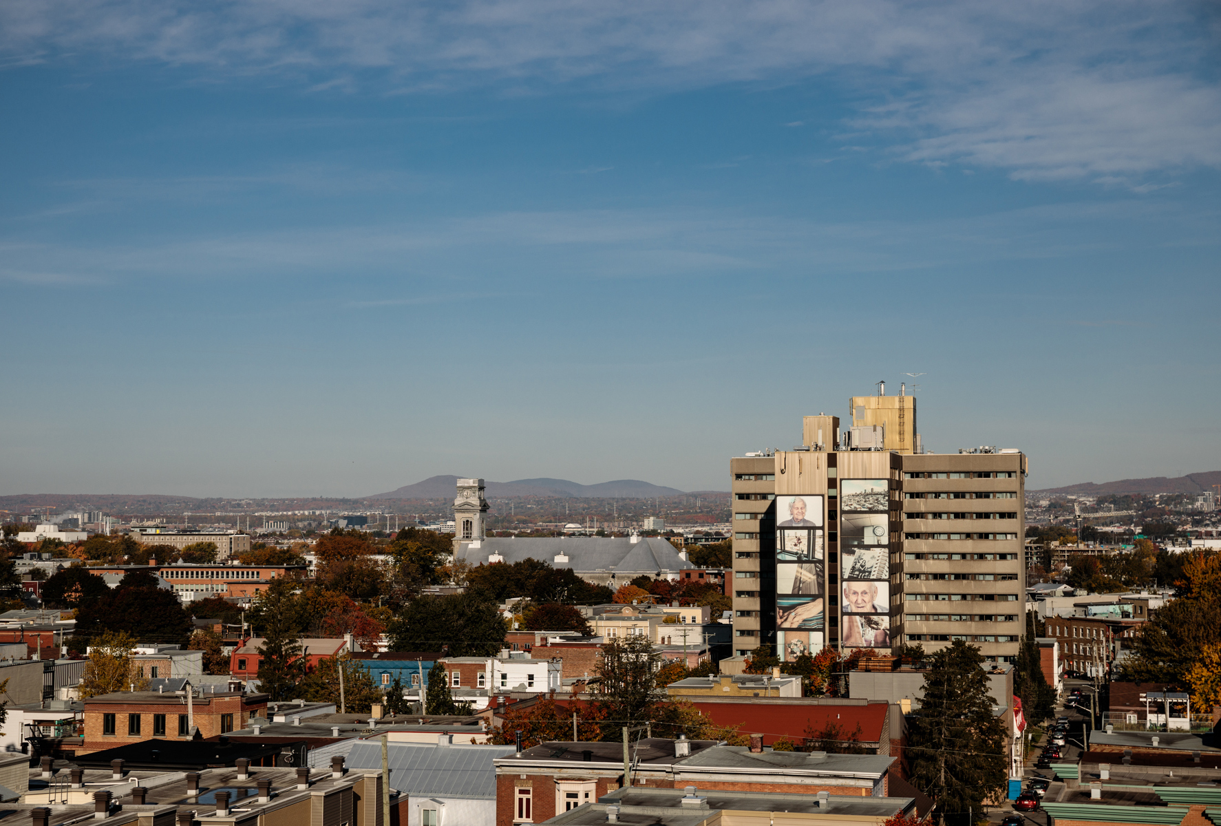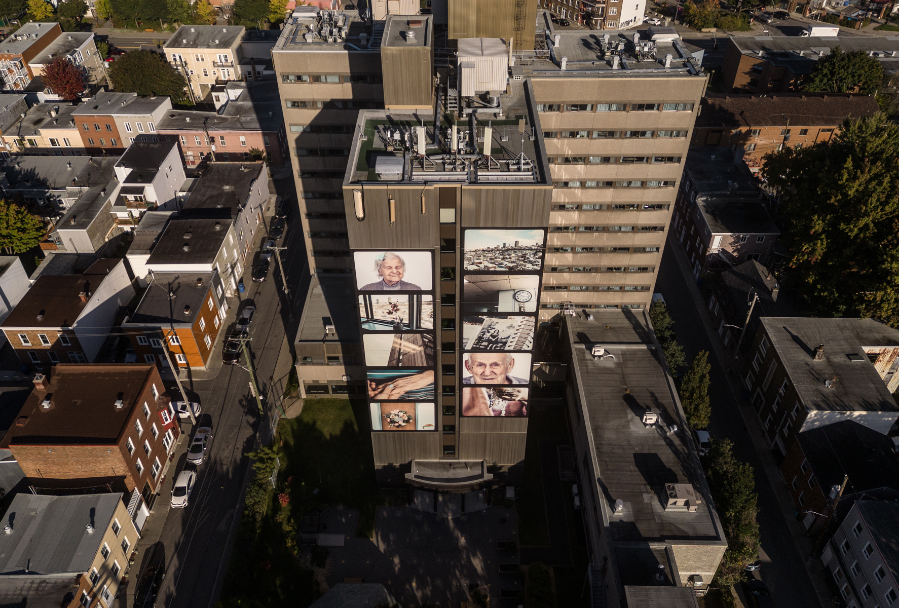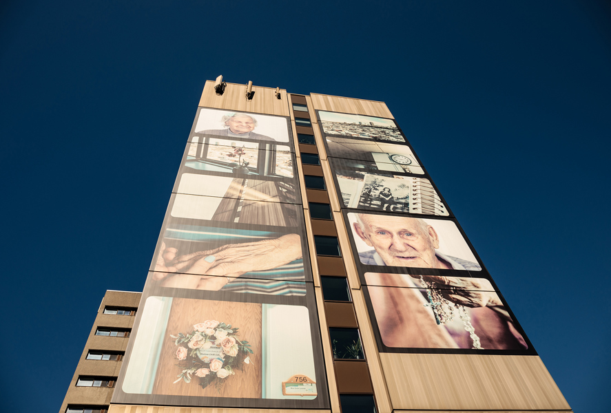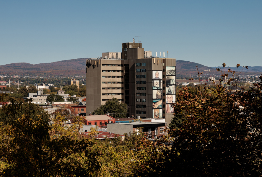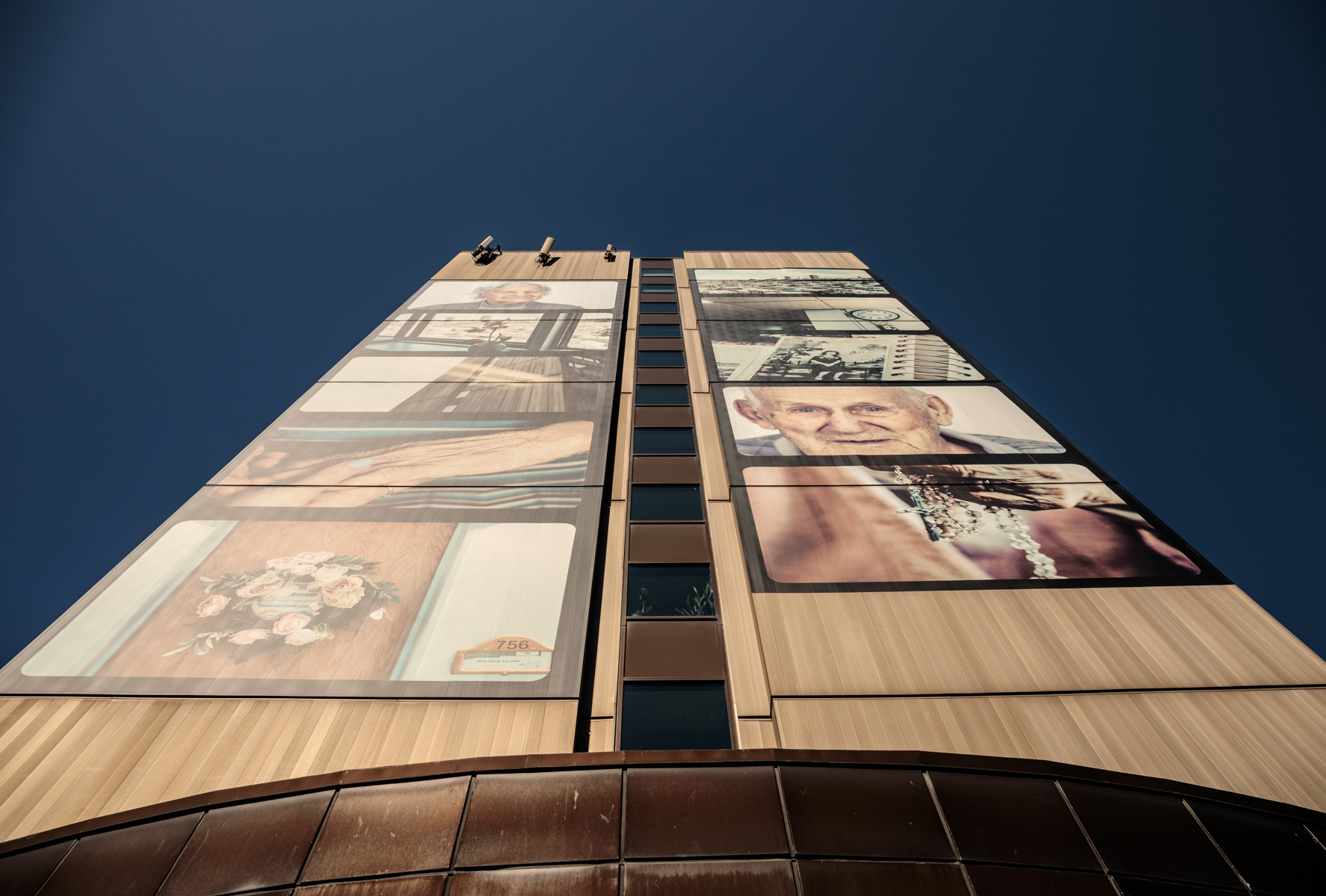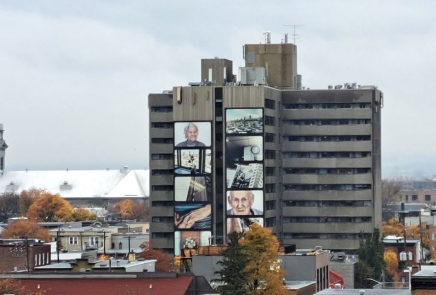 Cette murale photographique a été réalisée dans un contexte de médiation culturelle avec les occupants du CHSLD Notre-Dame-de-Lourdes. Elle contribue à dévoiler la vie qui se déroule à l'intérieur de cette tour visible de multiples points de vue dans la ville.