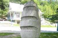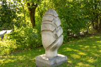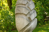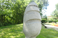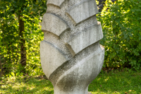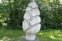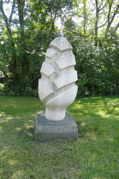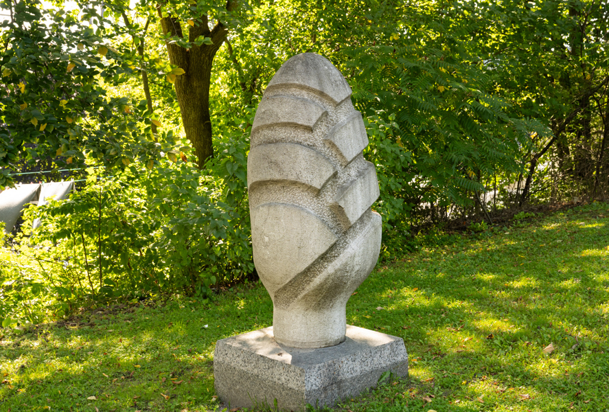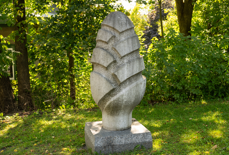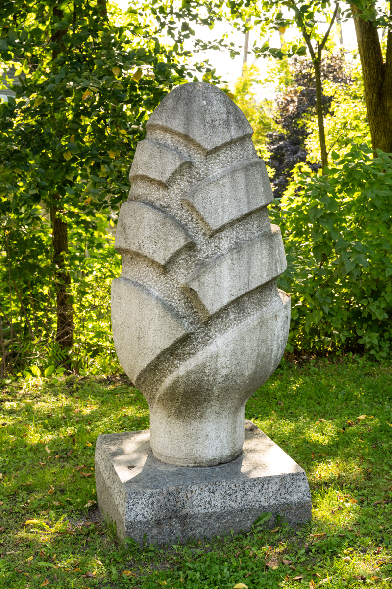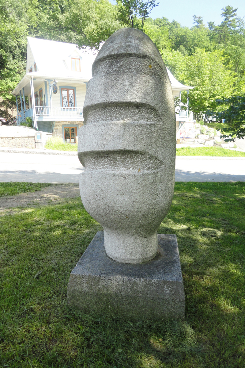 Cette sculpture en pierre calcaire a été taillée sur place, dans le parc de la Forge, situé en bordure de la côte de Cap-Rouge. Elle représente un cône de pin, l’un des emblèmes figurant sur les armoiries de l’ancienne ville de Cap-Rouge.