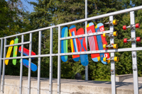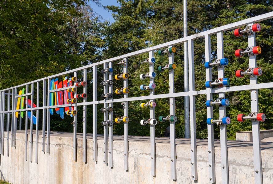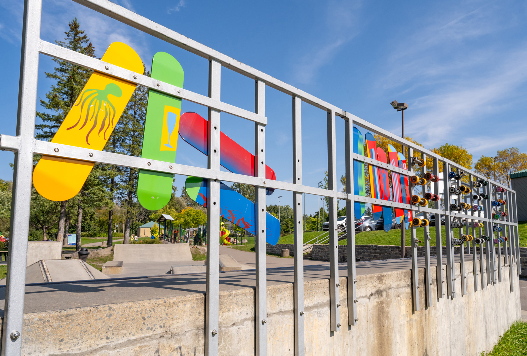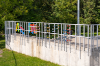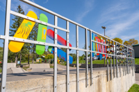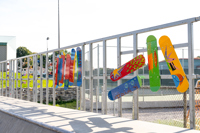 Cette intervention artistique borde un terrain sportif du parc Saint-Pierre.