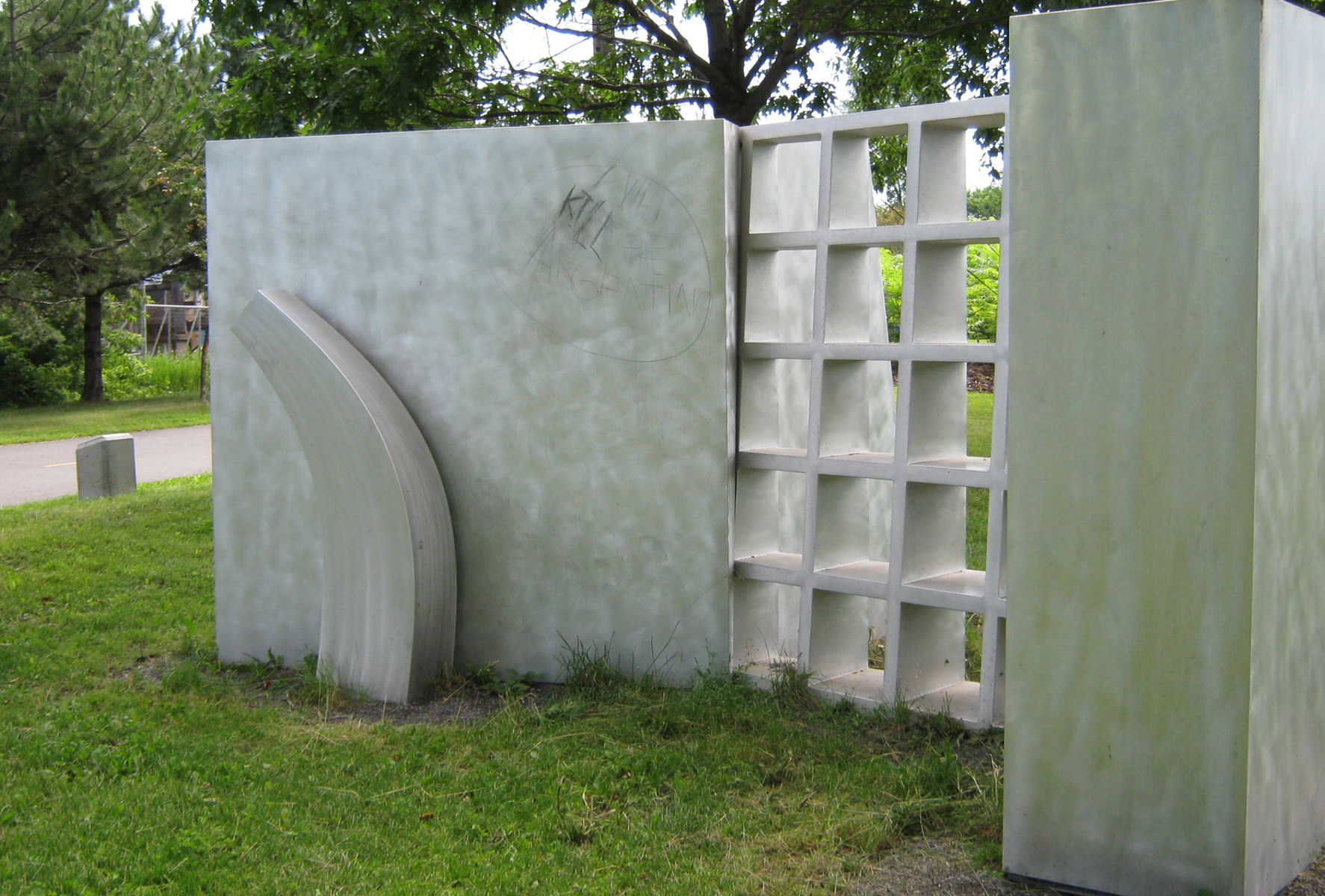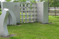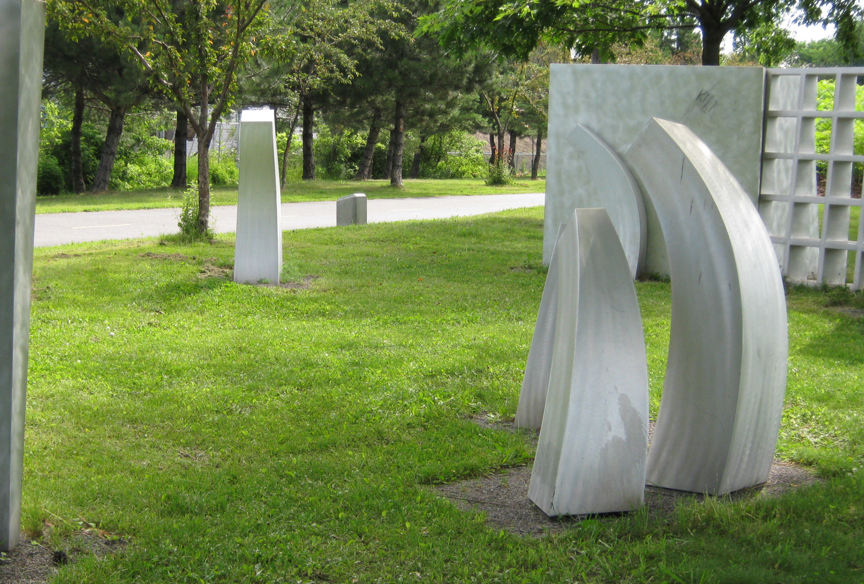 L'artiste se fait géographe dans cette œuvre installée sur la rive gauche de la rivière Saint-Charles. Ces 11 éléments en aluminium brossé matérialisent les particularités géologiques de Québec. On peut y voir la faille de Logan, fracture de l'écorce terrestre qui passe à travers la ville. La grille ajourée est un clin d'œil aux remparts de la cité fortifiée.