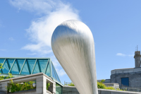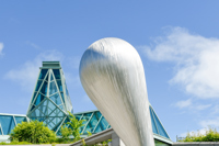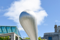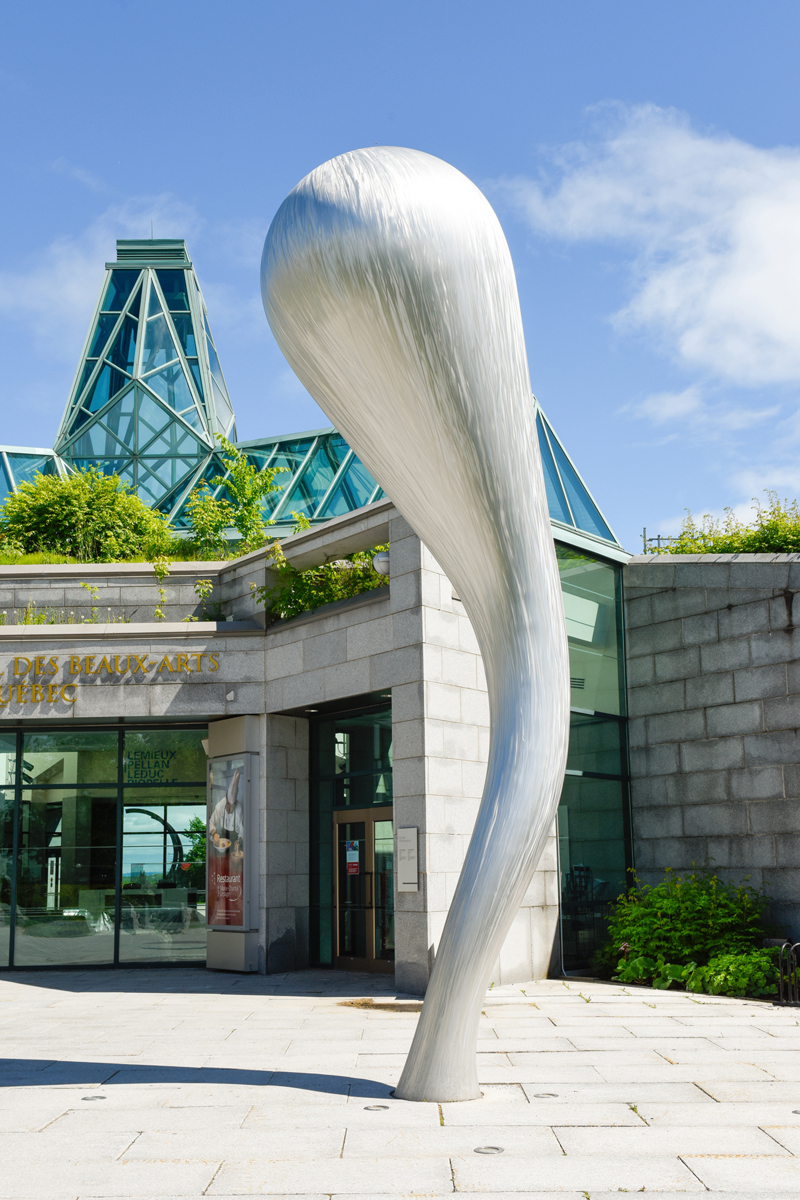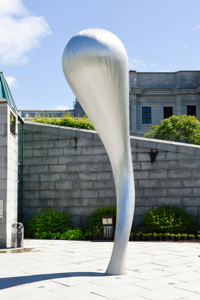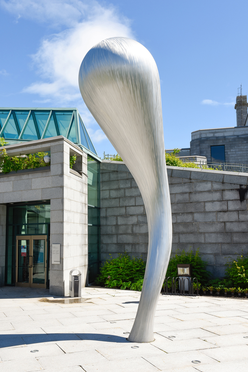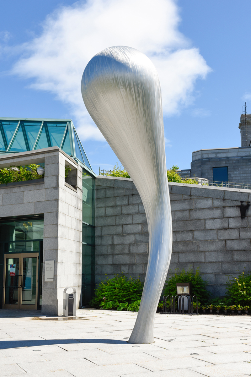 Trombe a l’aspect d’une goutte inversée animée d’un mouvement tourbillonnant. Par son apparente instabilité, elle éveille un sentiment d’étrangeté, voire de danger imminent. Elle dégage en même temps, à la manière d’un menhir, une énergie qui semble provenir des profondeurs de la Terre.