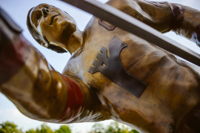 Intitulée Trop fort pour la ligue, l’œuvre de Guillaume Tardif représente le passage de Guy Lafleur chez les Remparts de Québec. Elle exprime une explosion figée, créée par la distorsion des formes, les plans pliés et brisés ainsi que la multiplication des lignes. Ce relâchement d’énergie brute, thème cher à l’artiste, projette le filet dans les airs. Le tir foudroyant du futur « Démon blond » fracasse l’espace, suspend le temps et défie la gravité.