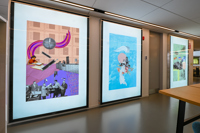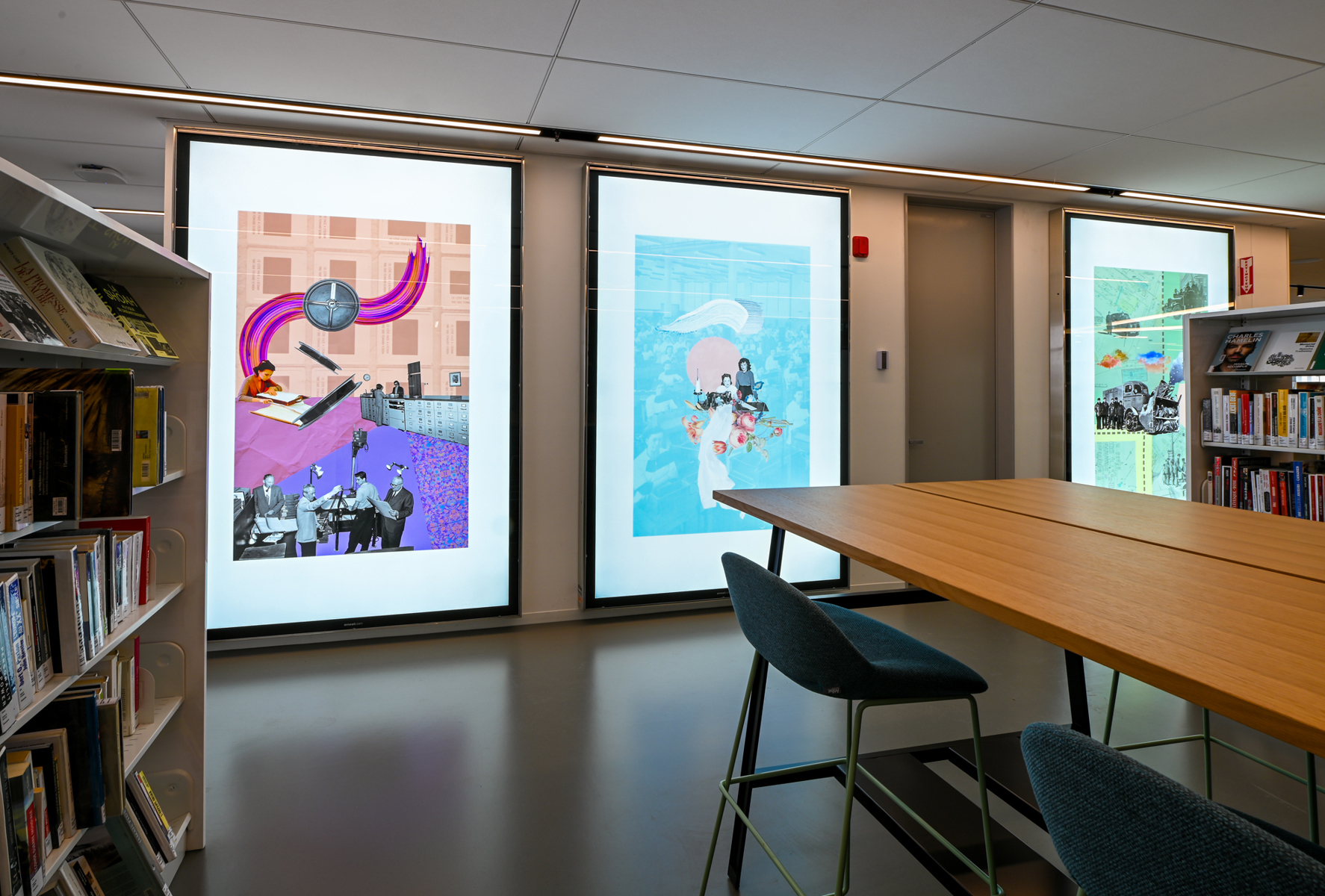 L’artiste crée des collages imprégnés de ces précieux instants d’un siècle de services municipaux. En combinant des photos d'archives de la Ville et des éléments graphiques divers, elle invente des endroits surréalistes où l’on retrouve des bribes d’histoires réinterprétées. Tant de souvenirs qui illuminent et tissent la foisonnante vie de Québec.