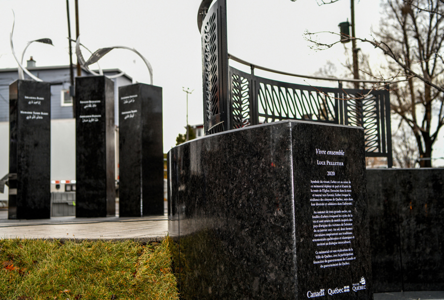 Au sommet de trois grands socles, six feuilles d’arbre évoquent les cycles de la vie et sont ornées de motifs inspirés des pays d’origine des victimes de l’attentat du 29 janvier 2017. Au sol, deux formes circulaires empruntent aux traditions ornementales québécoises et islamiques et invitent au dialogue interculturel.